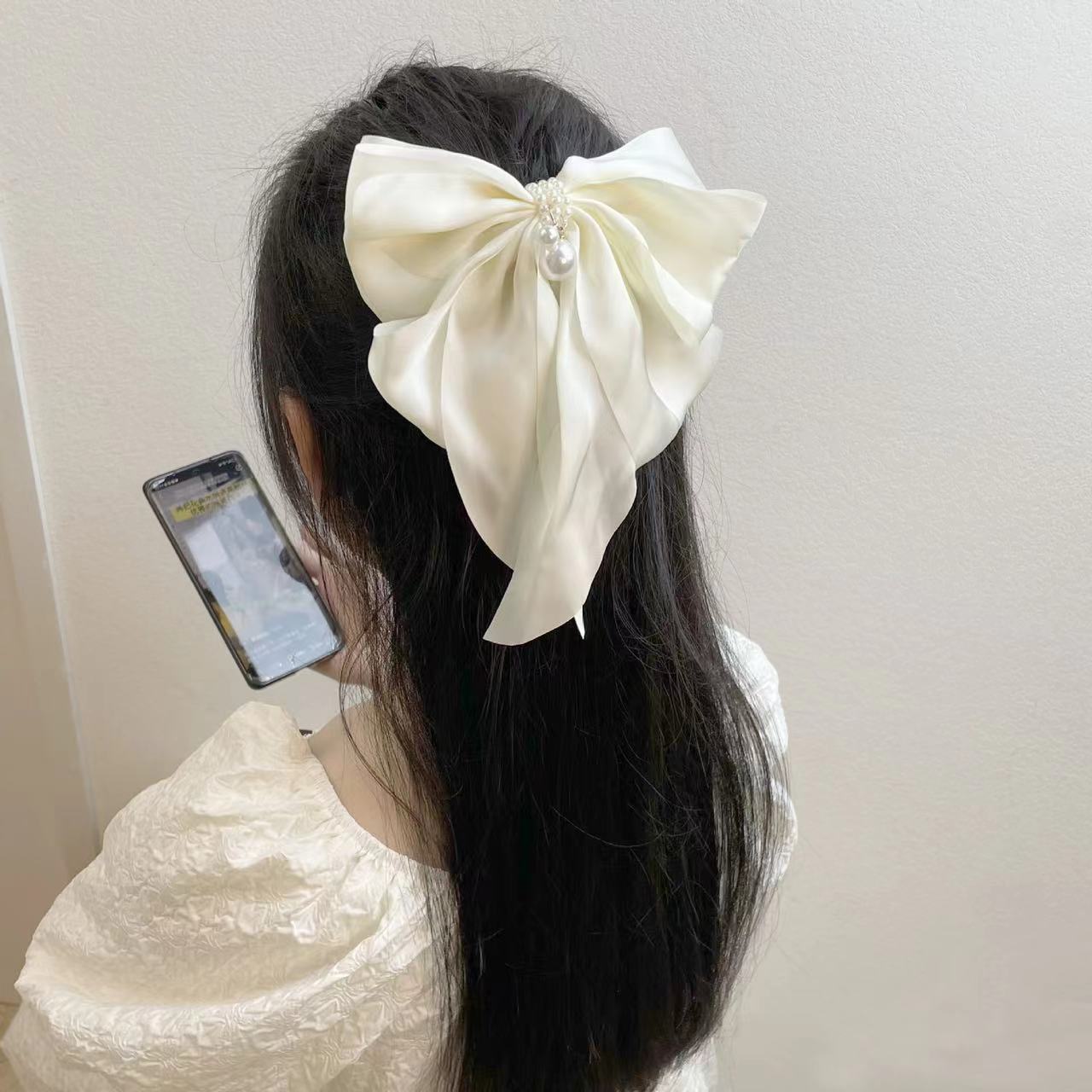 pearl yarn beige duckbill clip (14cm)