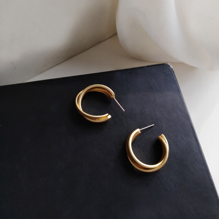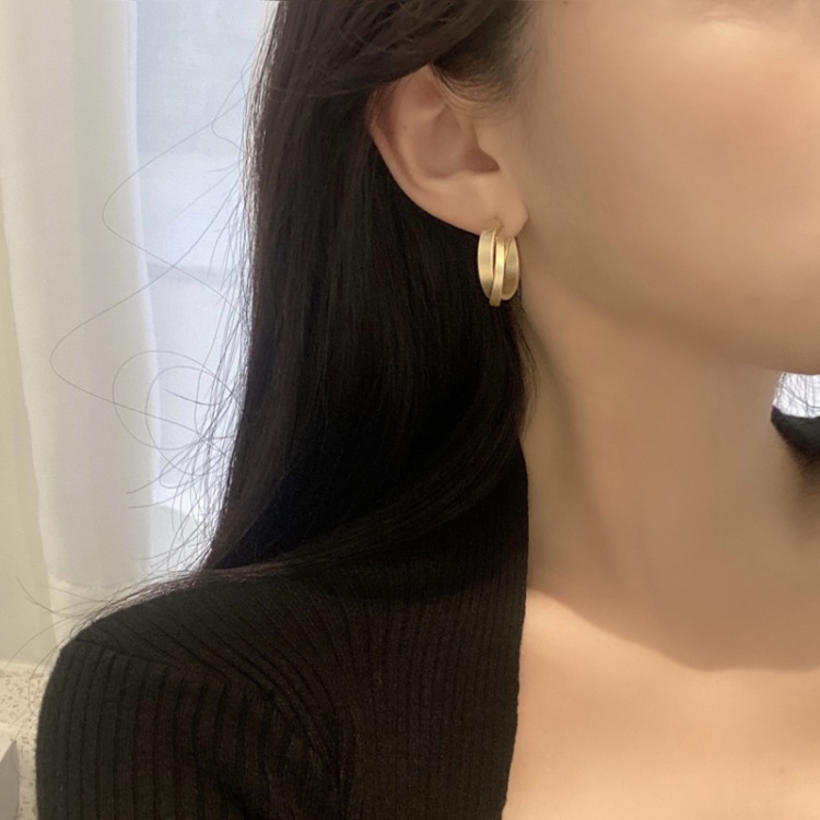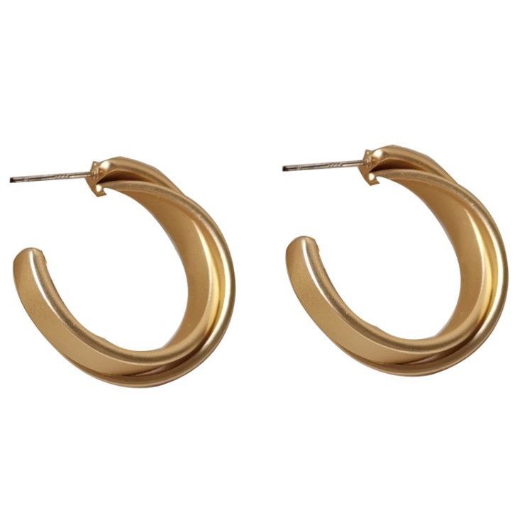 sterling silver needle gold ear ring pair
