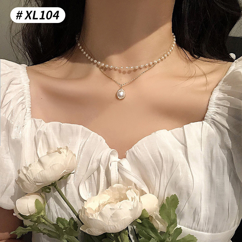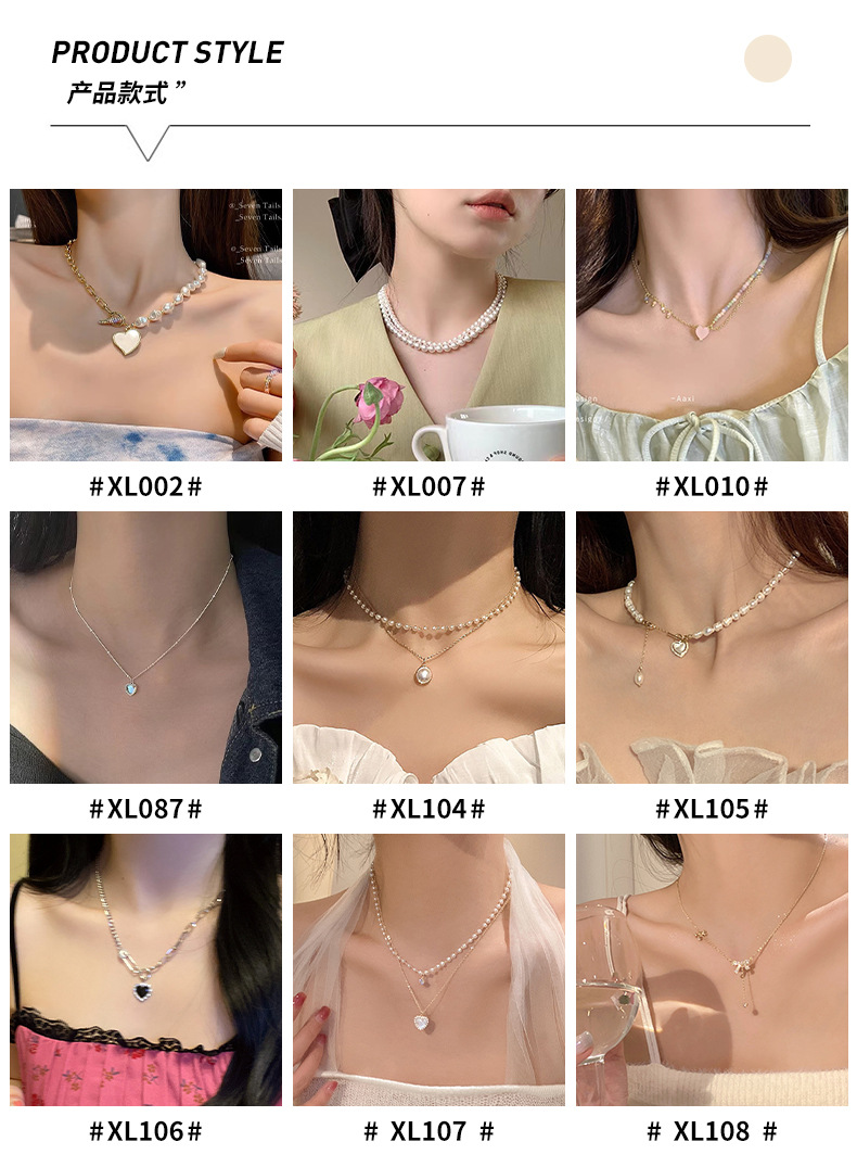 double-layer stitching love pearl necklace (xl010)