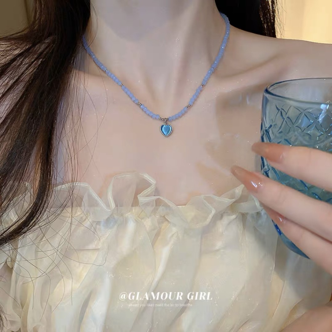 blue crystal necklace (xl088)