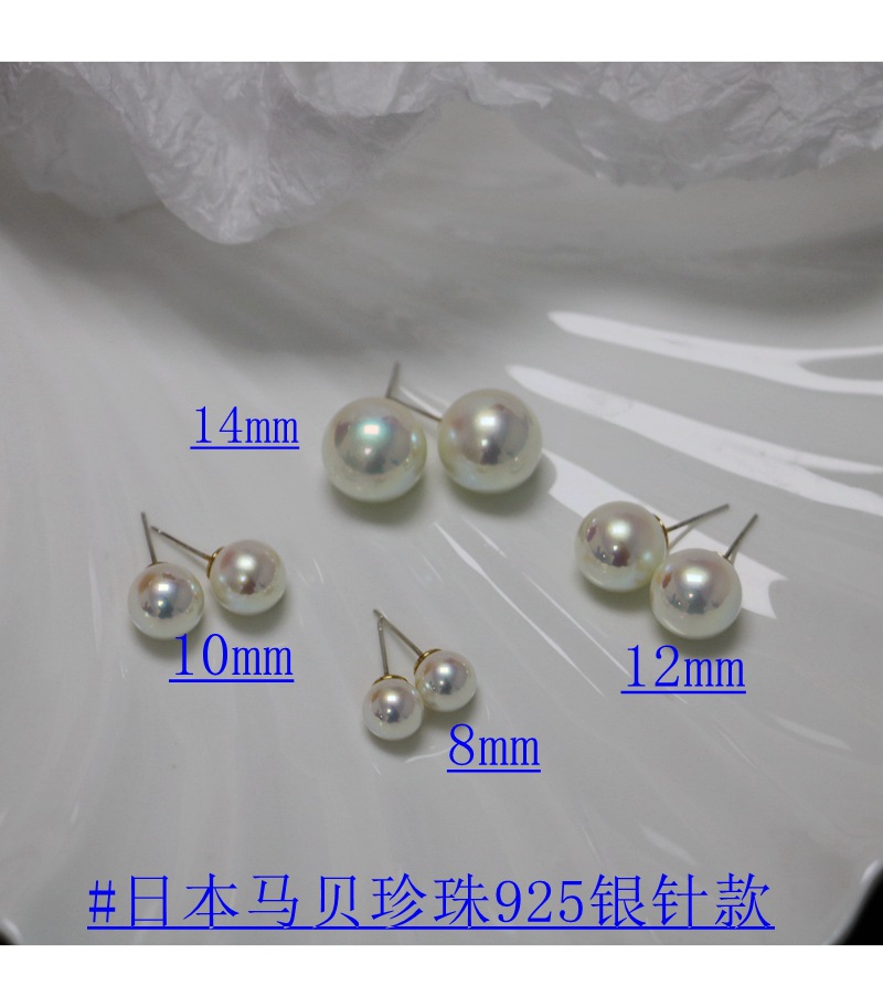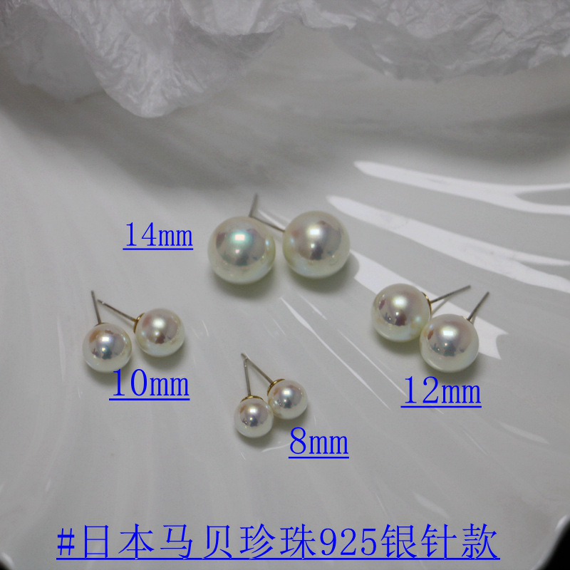 japanese horse pearl 925 silver needle -- 10mm