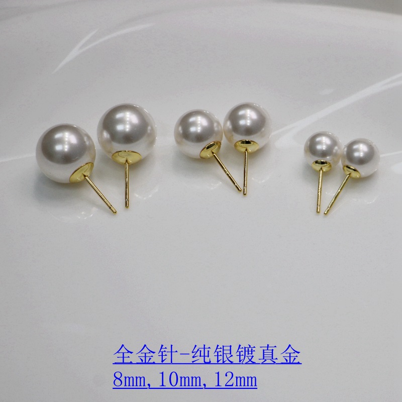 bare silver needle #650 shijia pearl 925 silver needle -- 8mm