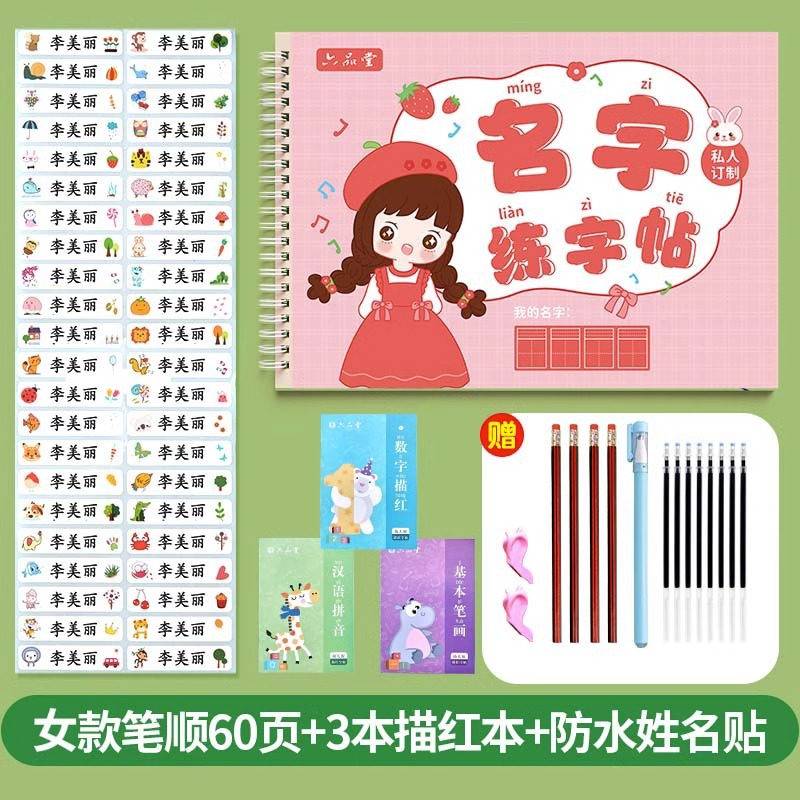 @ female pen pass 60 pages +3 books calligraphy exercise book + waterproof name sticker 50 pieces