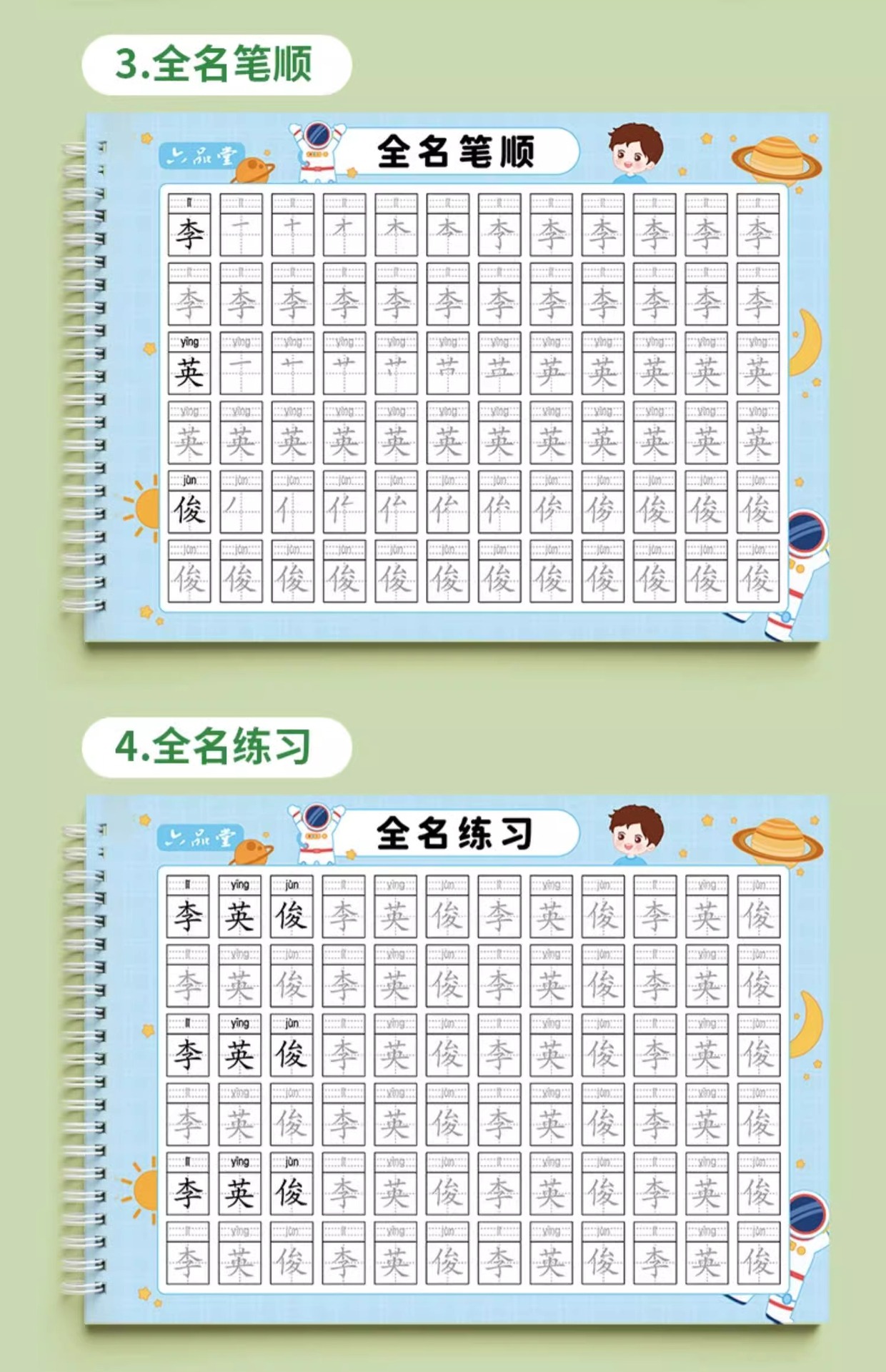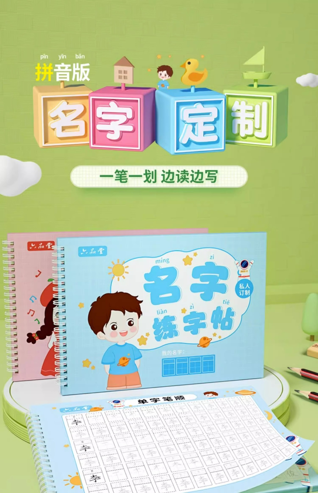 @ men's pen shun 32 pages +3 books calligraphy exercise book + waterproof name sticker 50 pieces