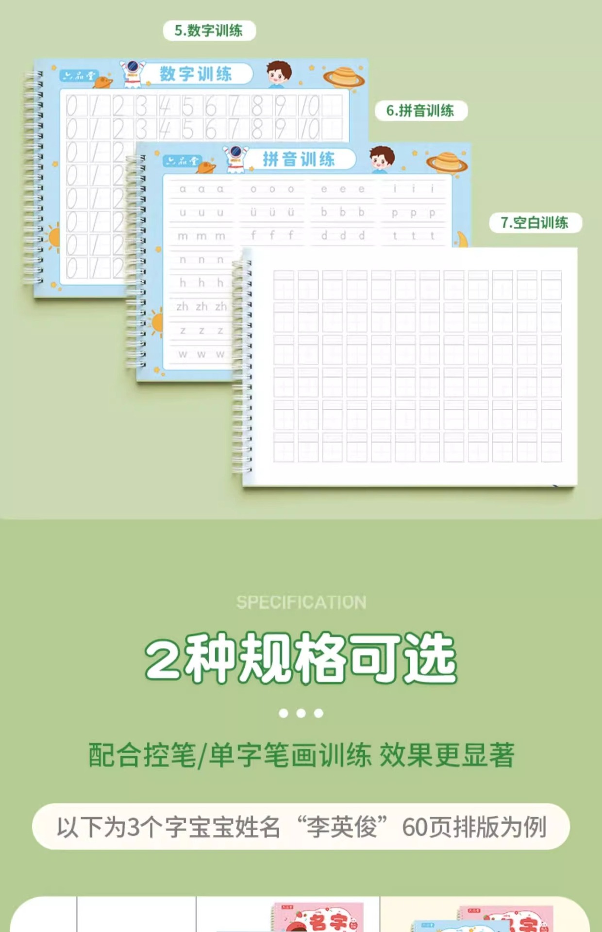 @ men's pen pass 60 pages +3 books calligraphy exercise book + waterproof name sticker 50 pieces