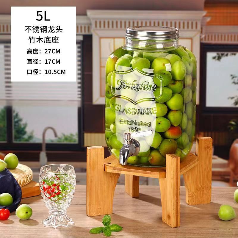 5.00kg glass bottle + stainless steel faucet + bamboo base; transparent