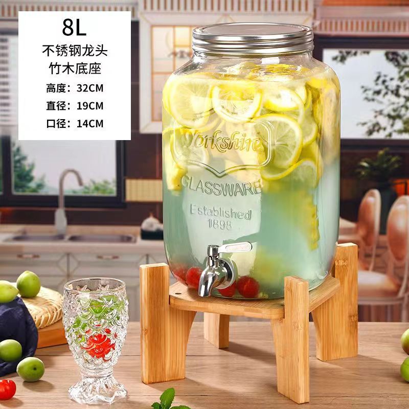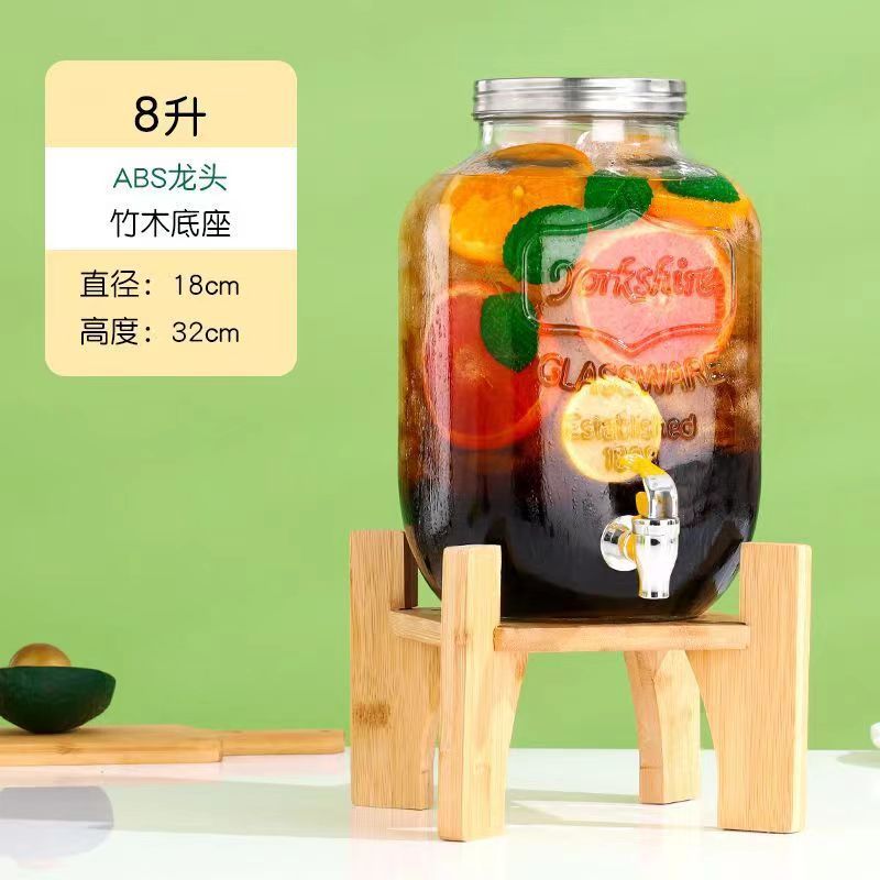 8.00kg glass bottle + stainless steel faucet + bamboo base; transparent