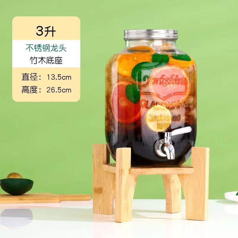 3.00kg glass bottle + stainless steel faucet + bamboo base; transparent