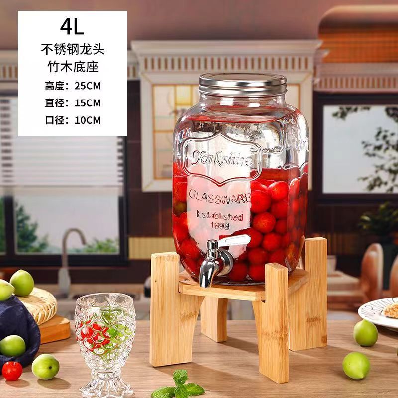 4.00kg glass bottle + stainless steel faucet + bamboo base; transparent