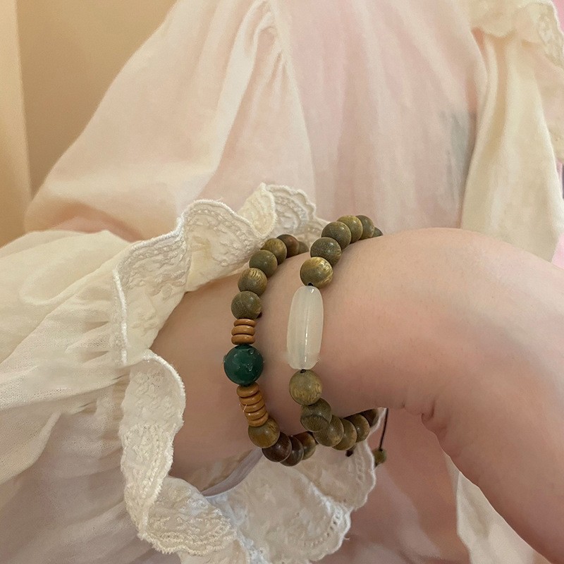 blue wave green zhu ebony beaded bracelet