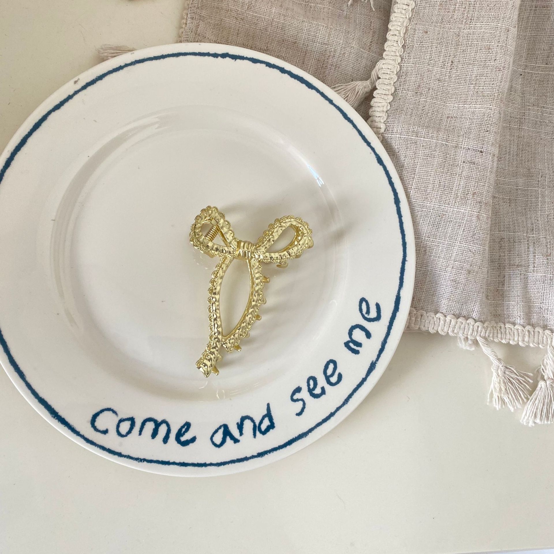 11# golden texture bow claw clip