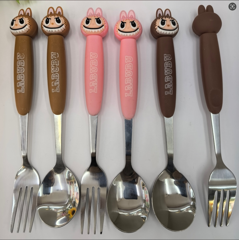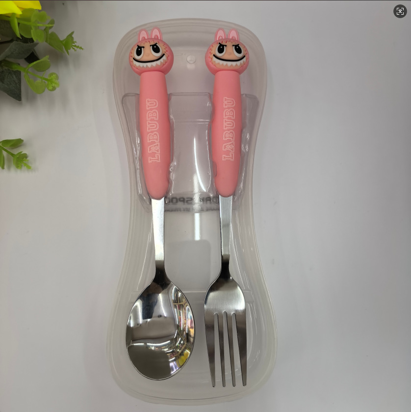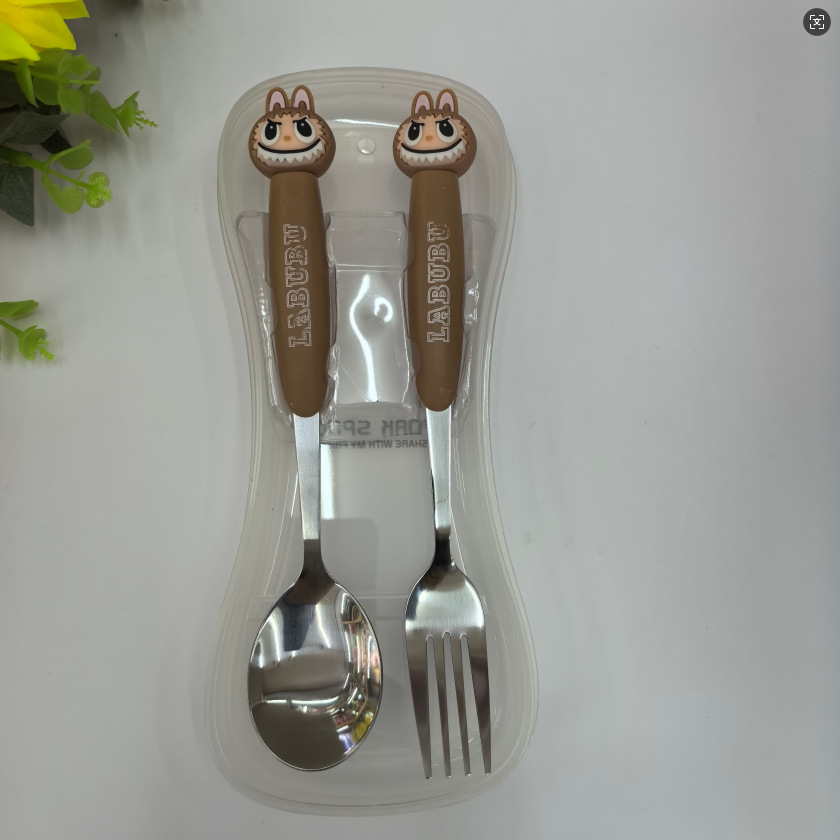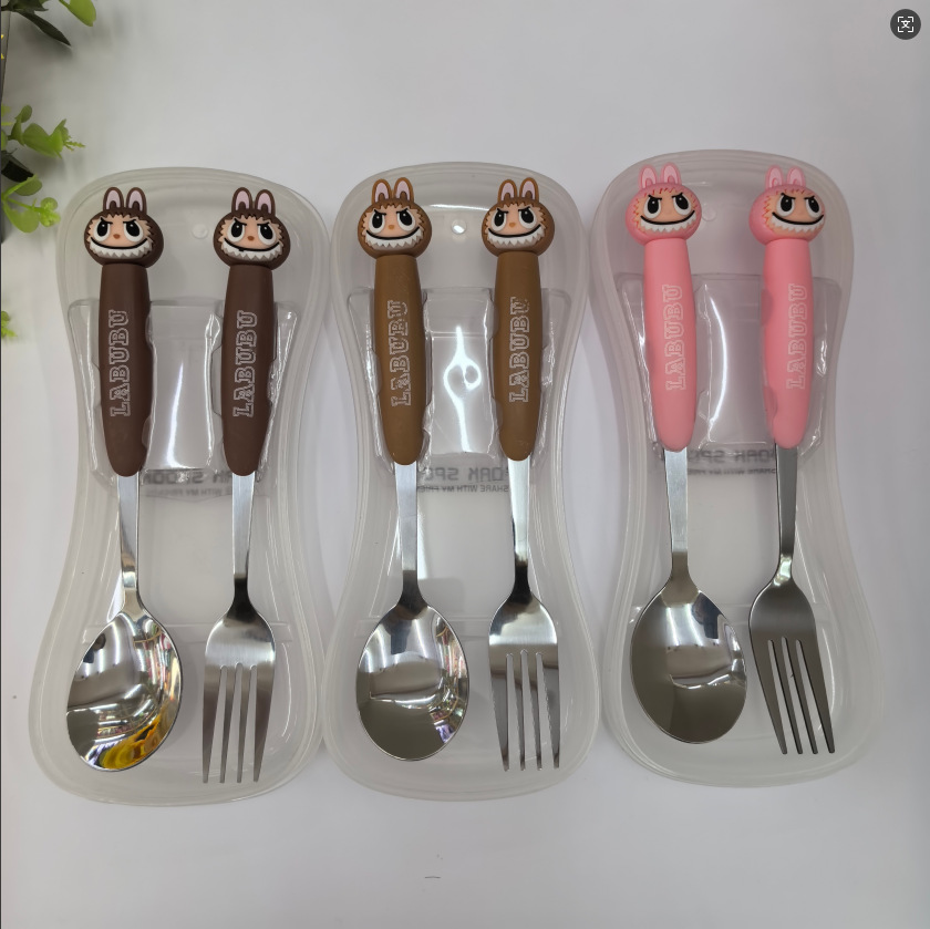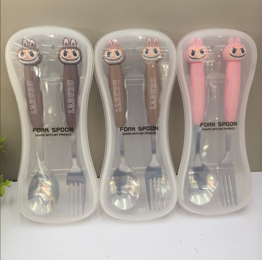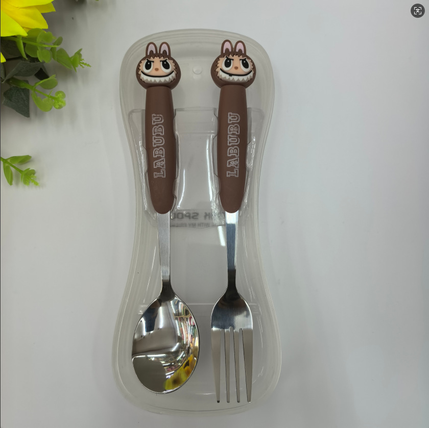 large cartoon automobiles curtain cloth stainless steel tableware two-piece set 410 material fork spoon student portable