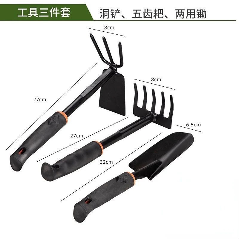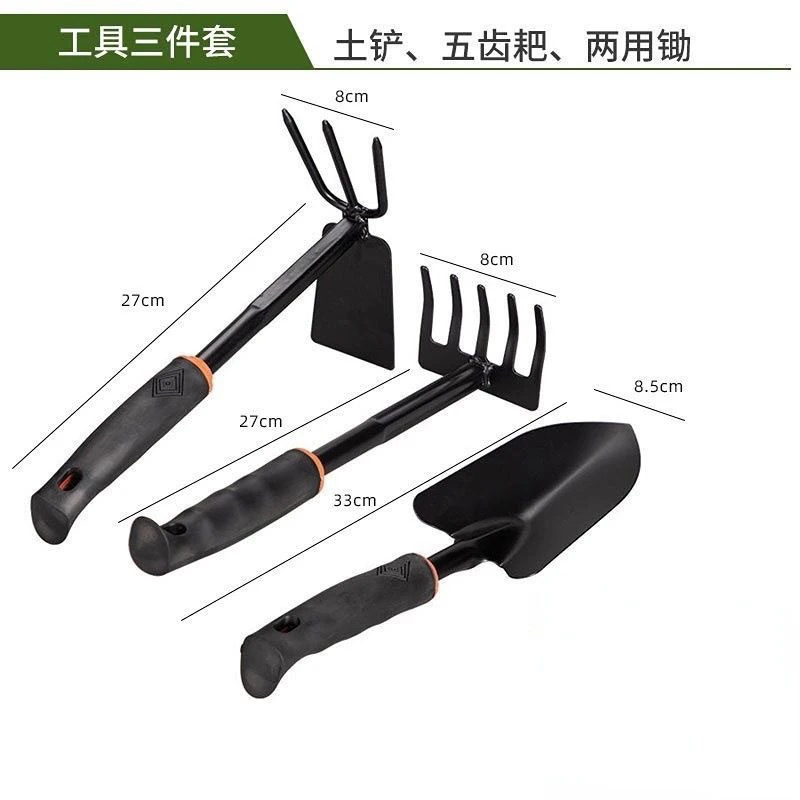 3-piece set (narrow shovel + five tooth rake + dual-purpose hoe)