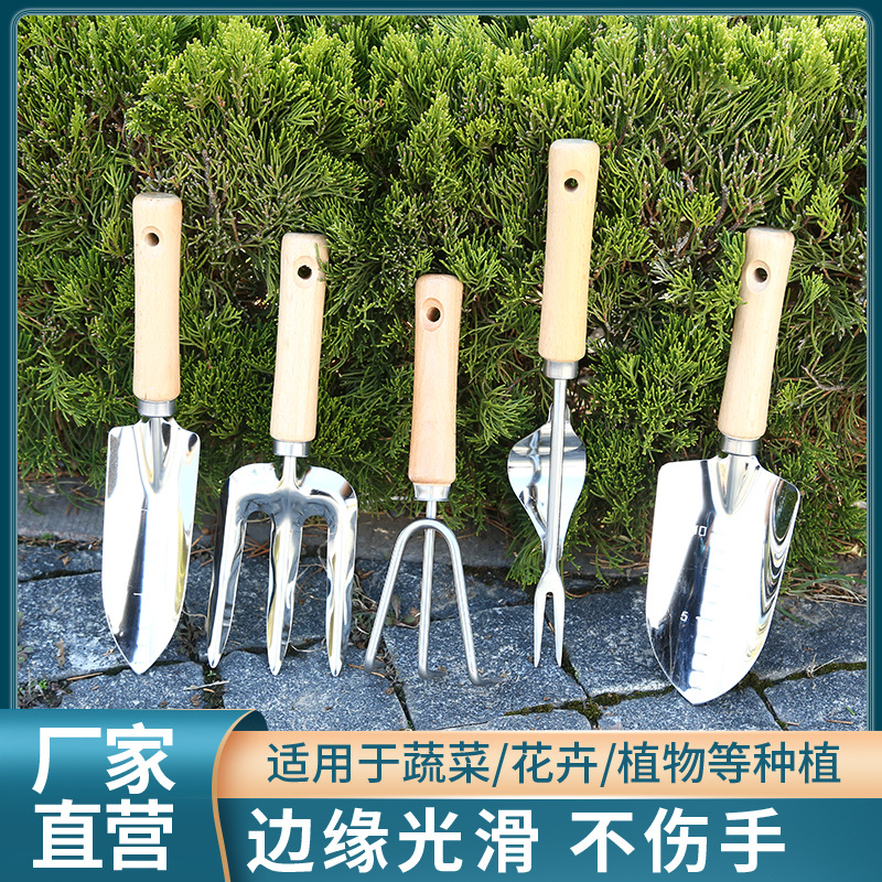 stainless steel narrow shovel with wooden handle