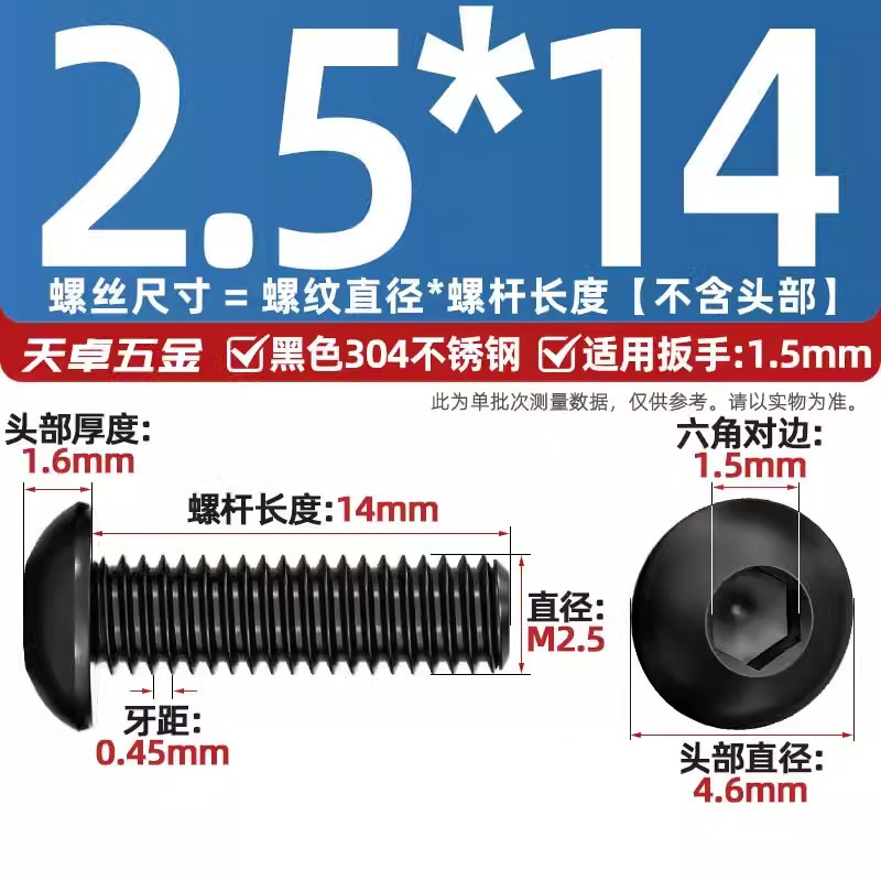 [black 304] m2.5 * 14-10