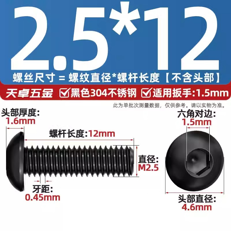 [black 304] m2.5 * 12-10