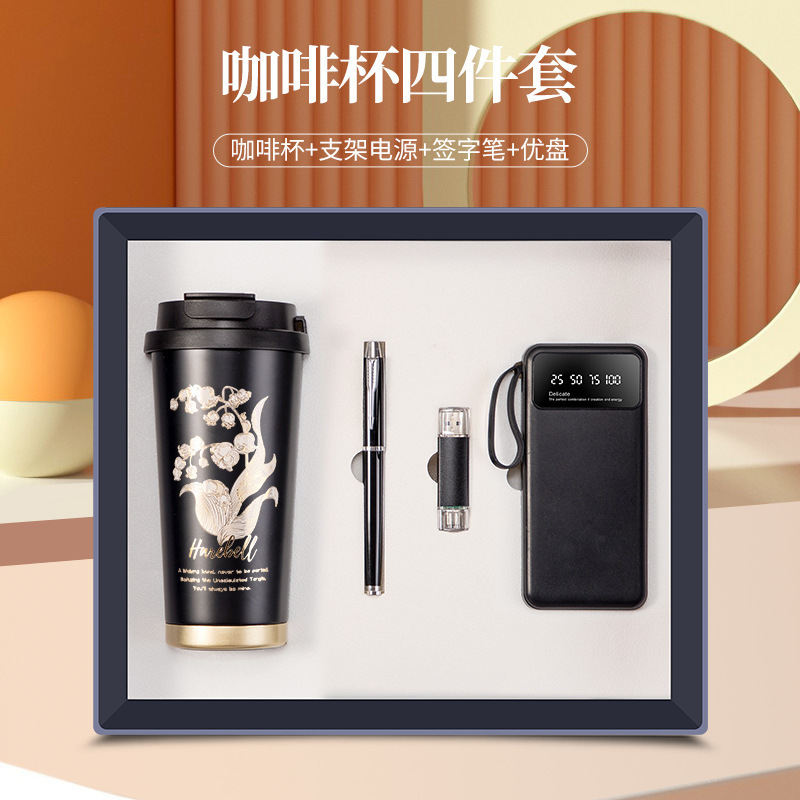 linglan cup + power bank + signature pen + u disk/black four-piece set