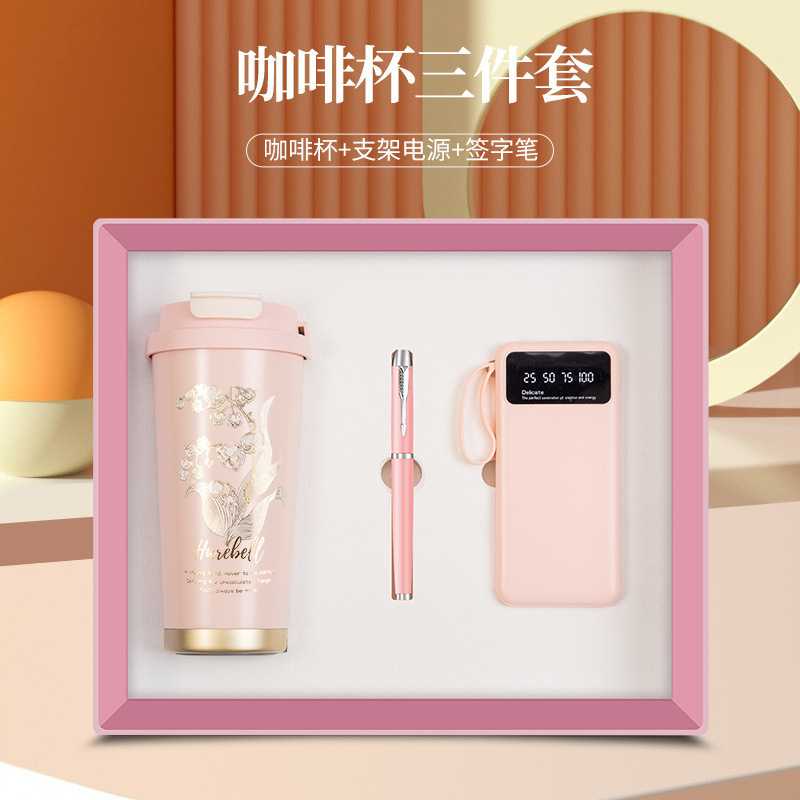 linglan cup + power bank + signature pen/pink three-piece set