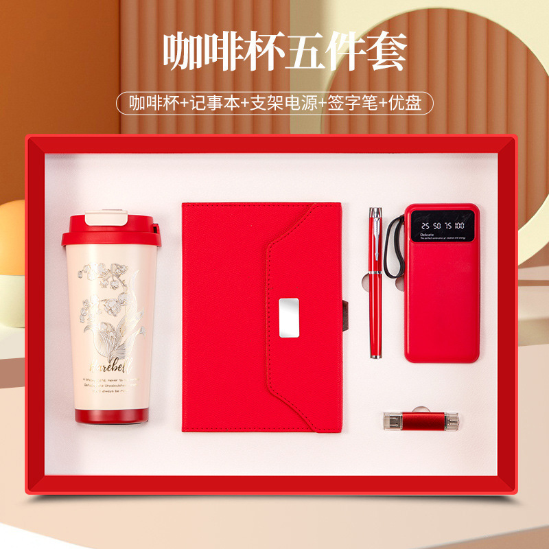 linglan cup + notebook + signature pen + power bank + u disk/red five-piece set