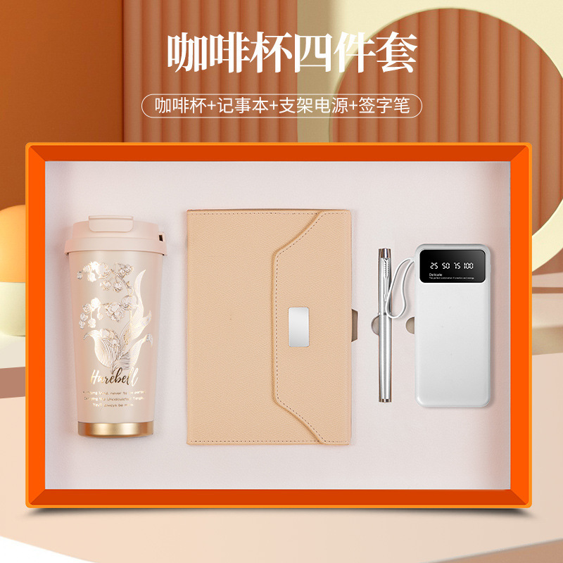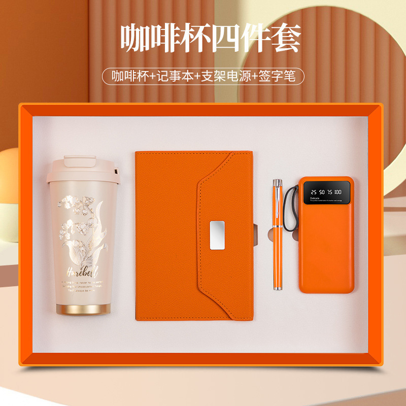 linglan cup + notebook + signature pen + power bank/orange four-piece set