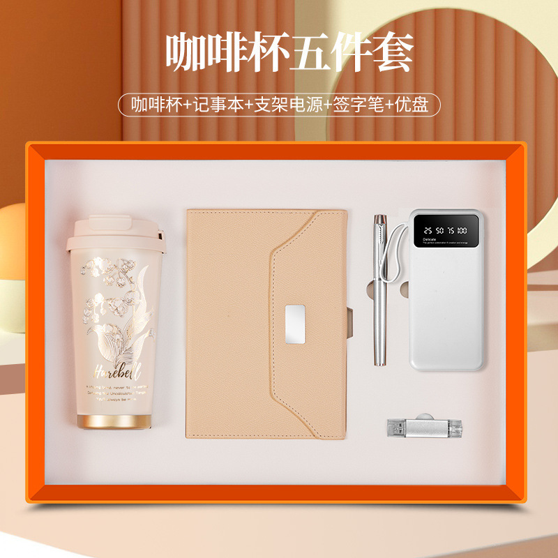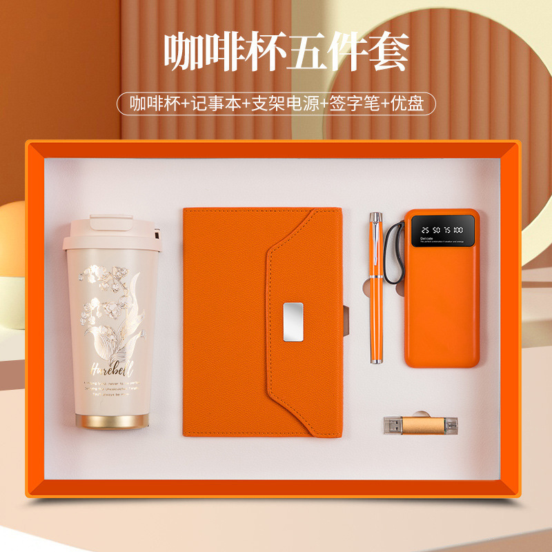 linglan cup + notebook + signature pen + power bank + u disk/orange five-piece set