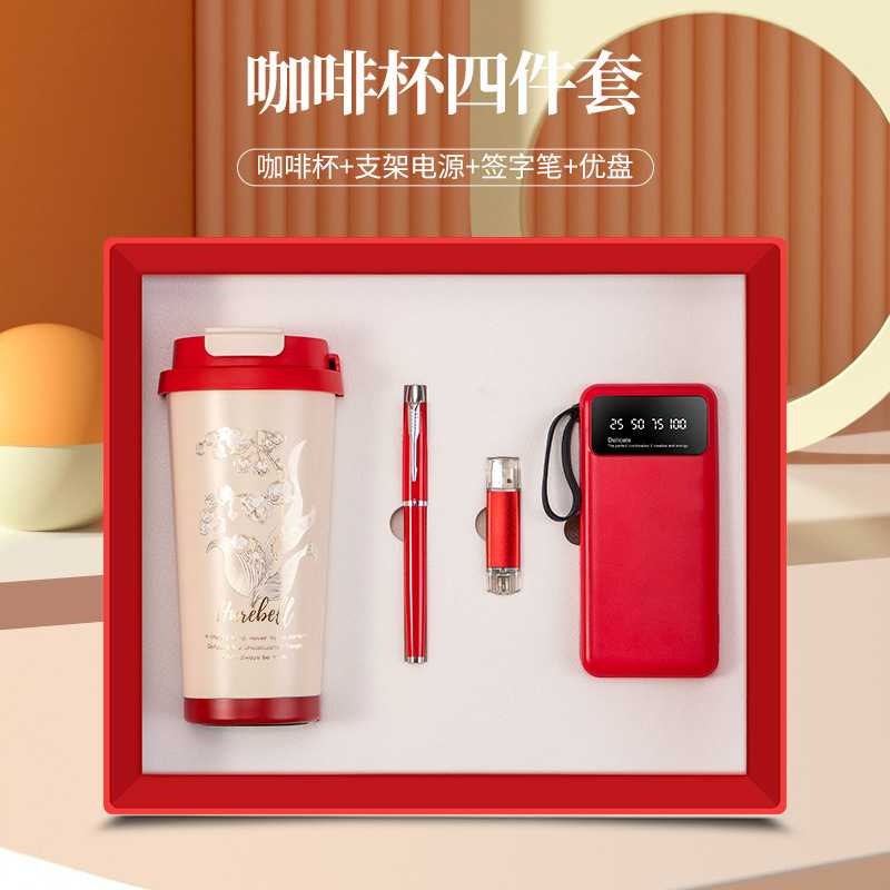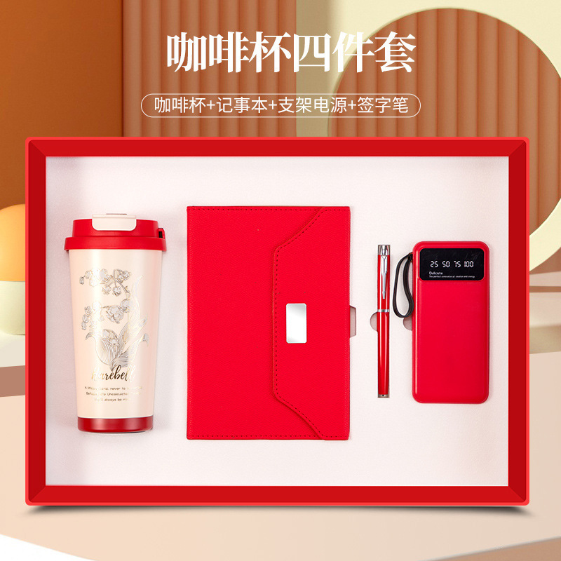 linglan cup + notebook + signature pen + power bank/red four-piece set