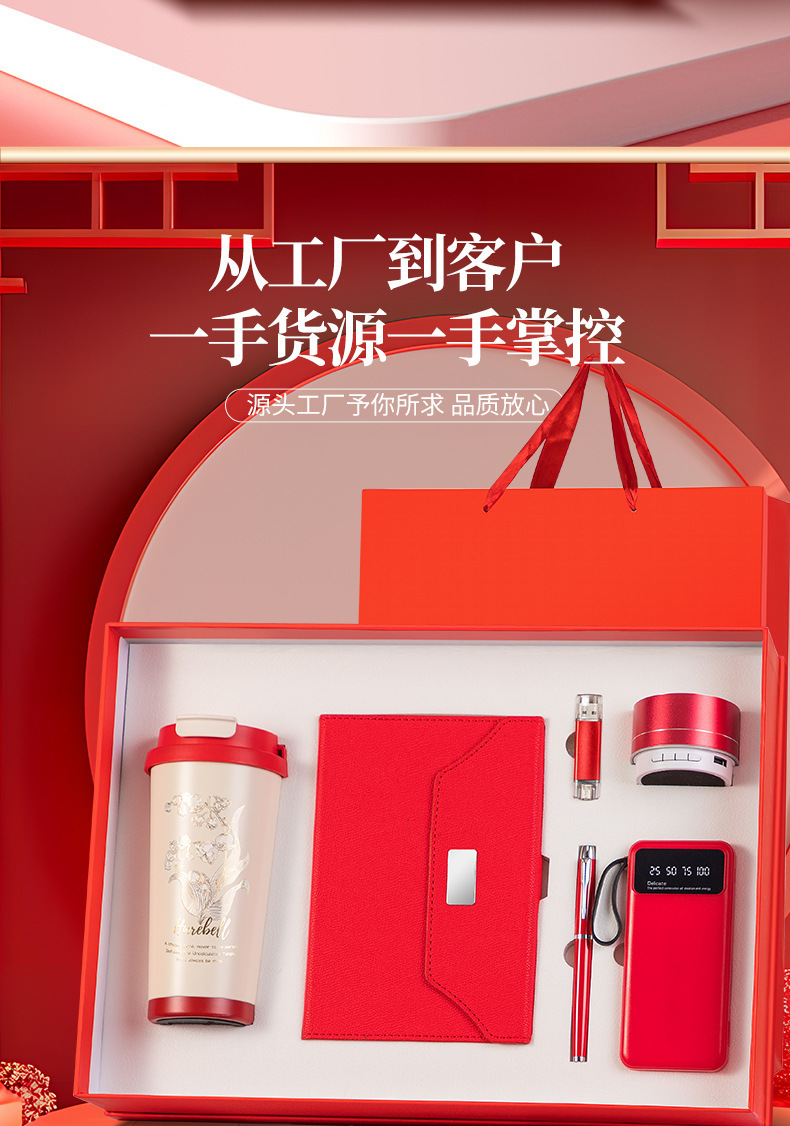 linglan cup + notebook + signature pen + power bank + u disk + speaker/red six-piece set