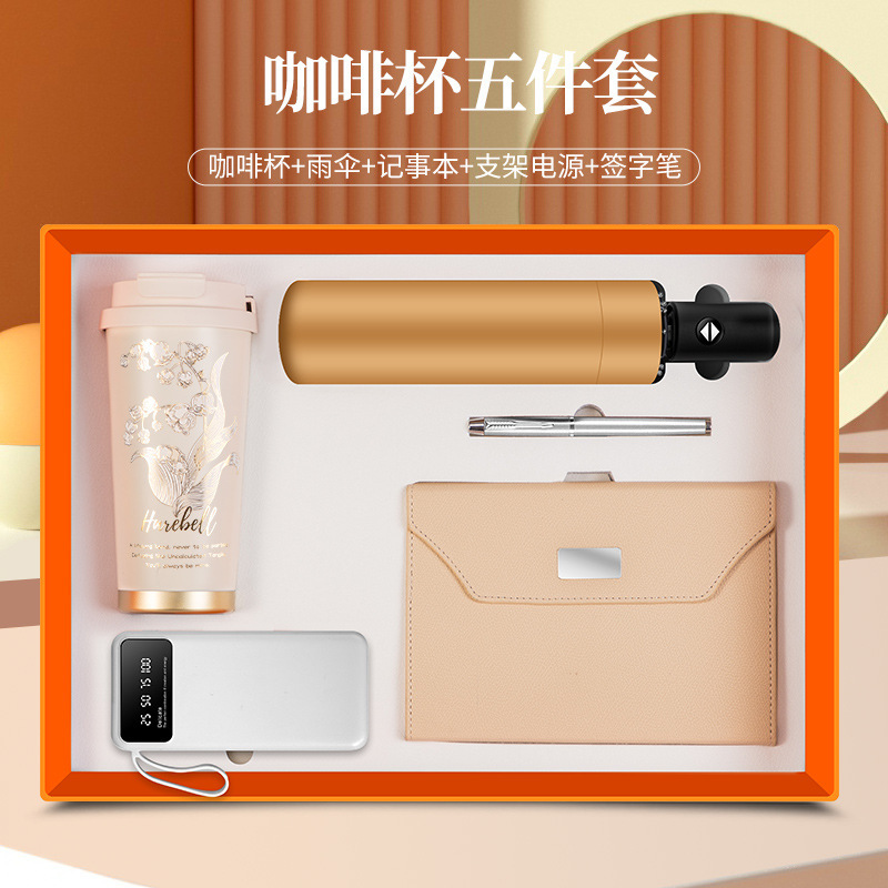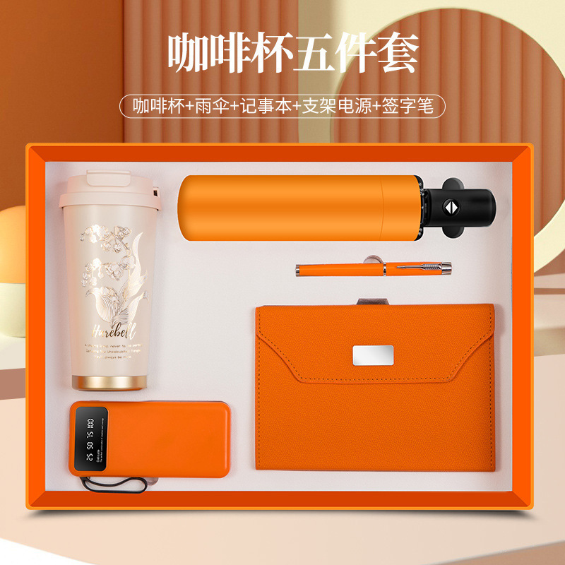 linglan cup + notebook + signature pen + power bank + umbrella/orange five-piece set
