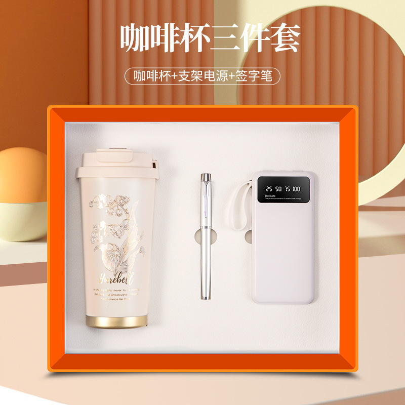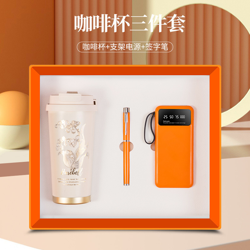 linglan cup + power bank + signature pen/orange three-piece set