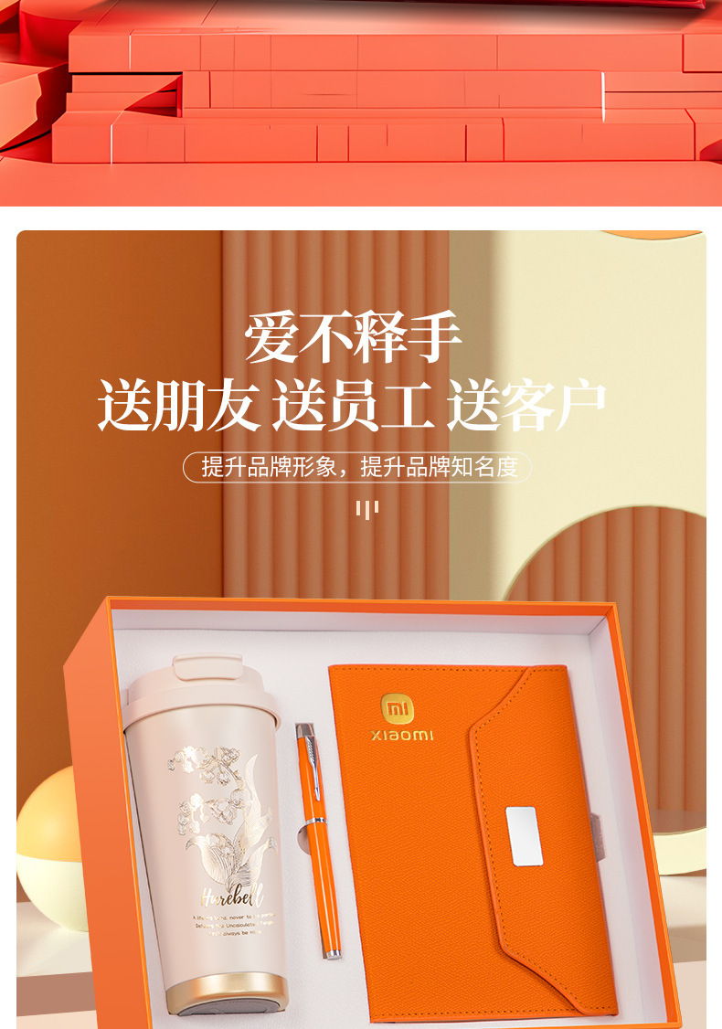 linglan cup + notebook + signature pen/orange three-piece set
