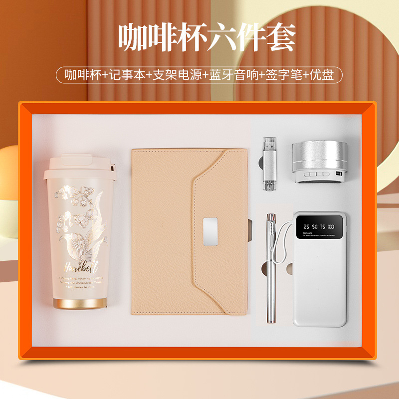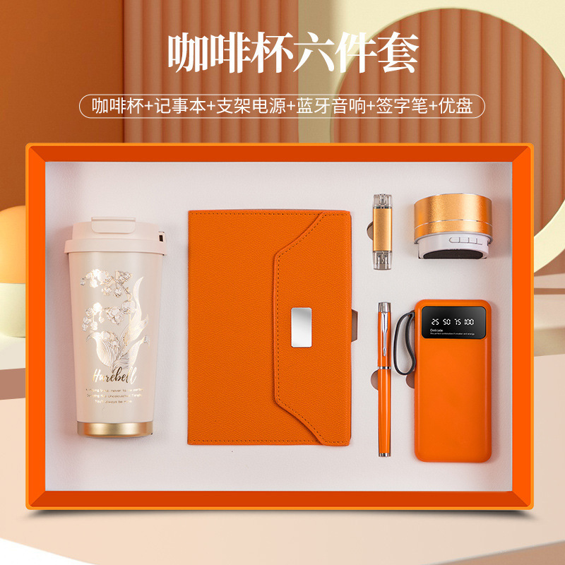 linglan cup + notebook + signature pen + power bank + u disk + speaker/orange six-piece set