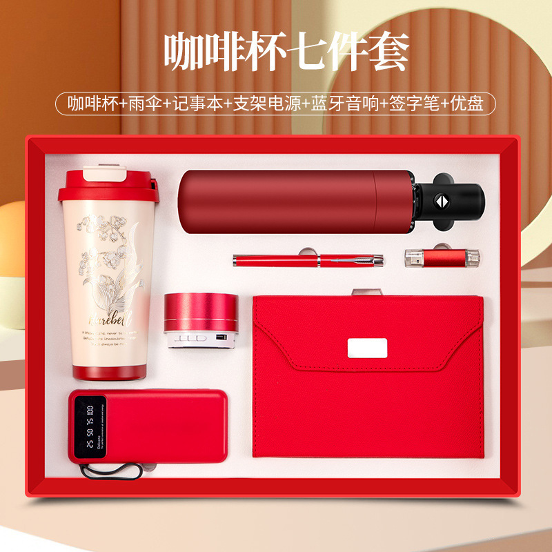 linglan cup + notebook + signature pen + power bank + umbrella + u disk + speaker/red seven-piece