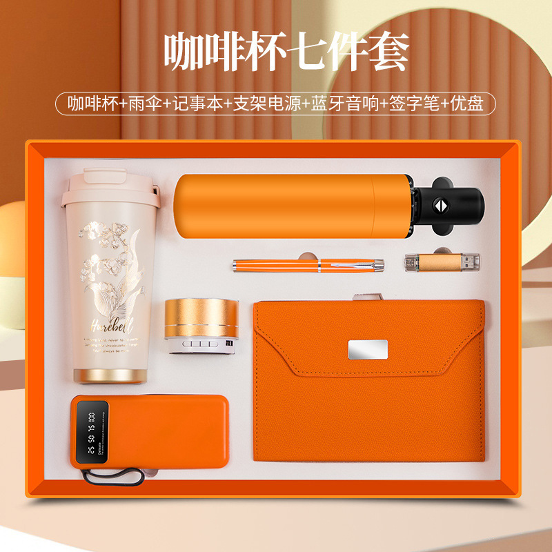 linglan cup + notebook + signature pen + power bank + umbrella + u disk + speaker/orange seven-piece