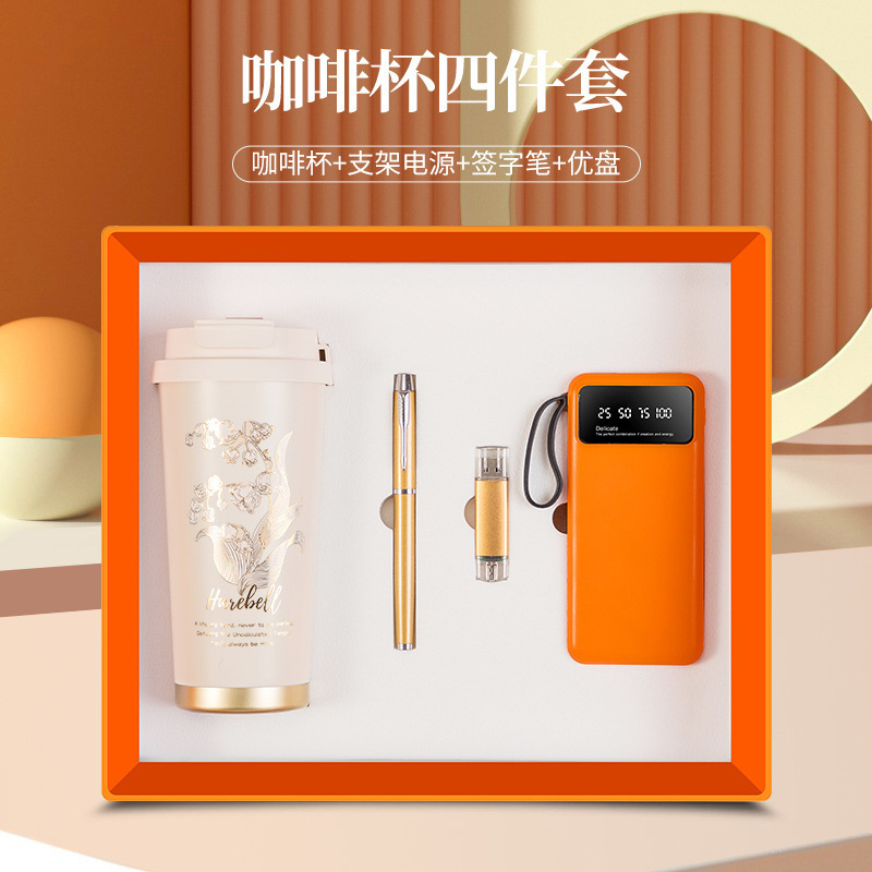 linglan cup + power bank + signature pen + u disk/orange four-piece set