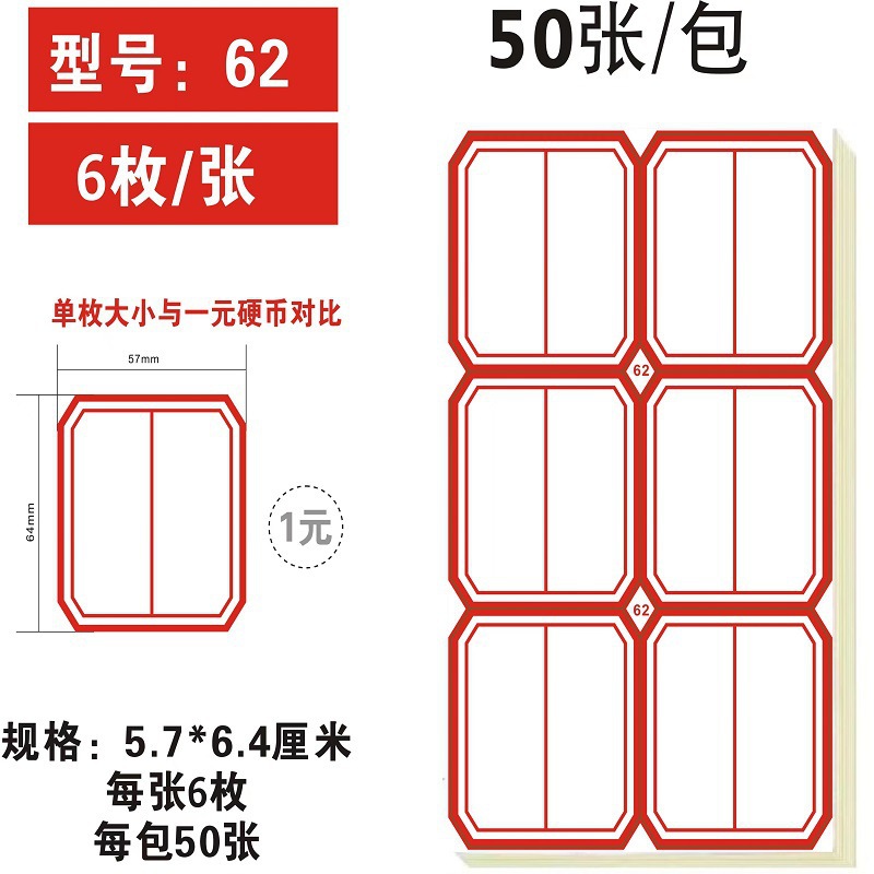 62 red * 50 sheets [5.7*6.4]]