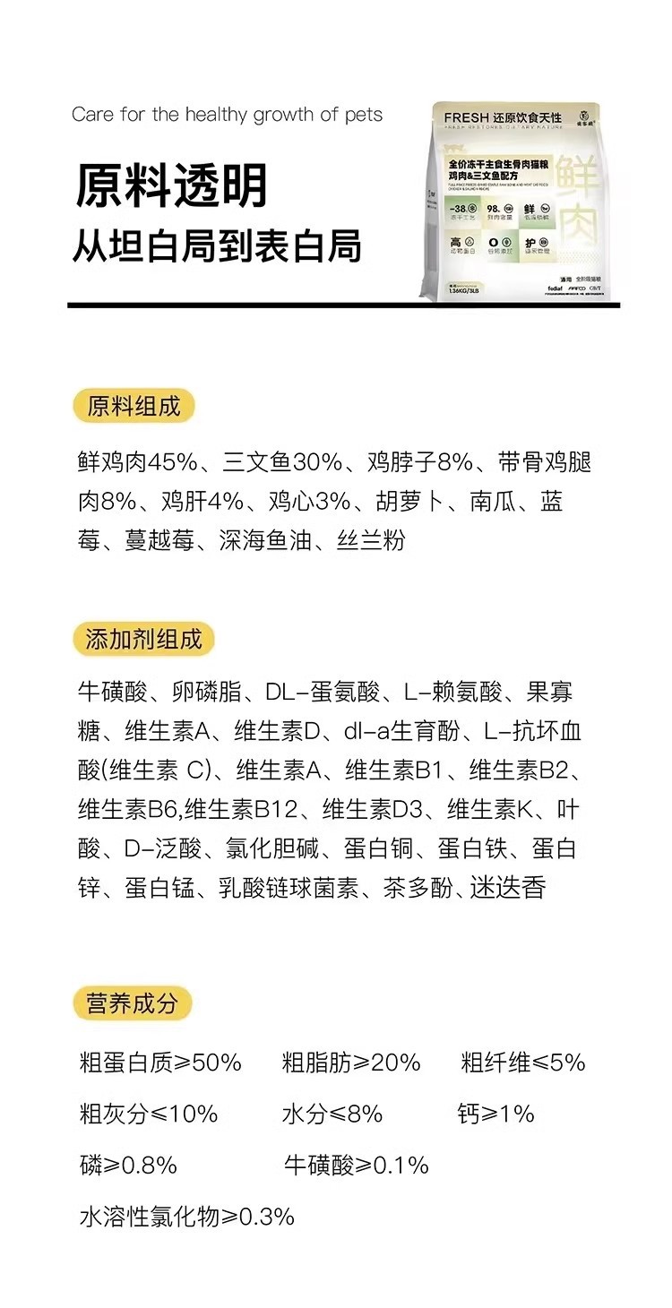 | full-price freeze-dried raw flesh staple food cat food chicken salmon formula 1.36kg | ¥193.98 | 50 pack available |