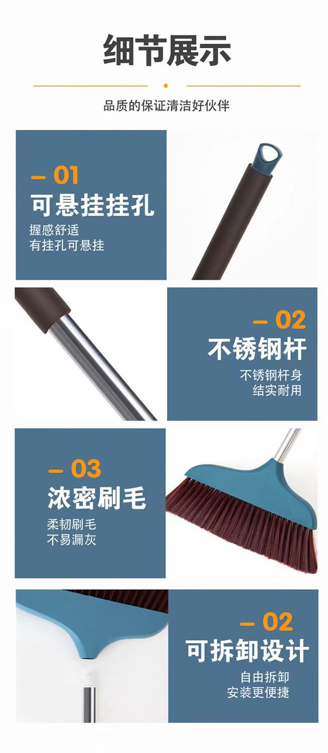 factory direct supply thickened plus size stainless steel integrated rod 5 rows soft fur widened plastic big broom broom wholesale