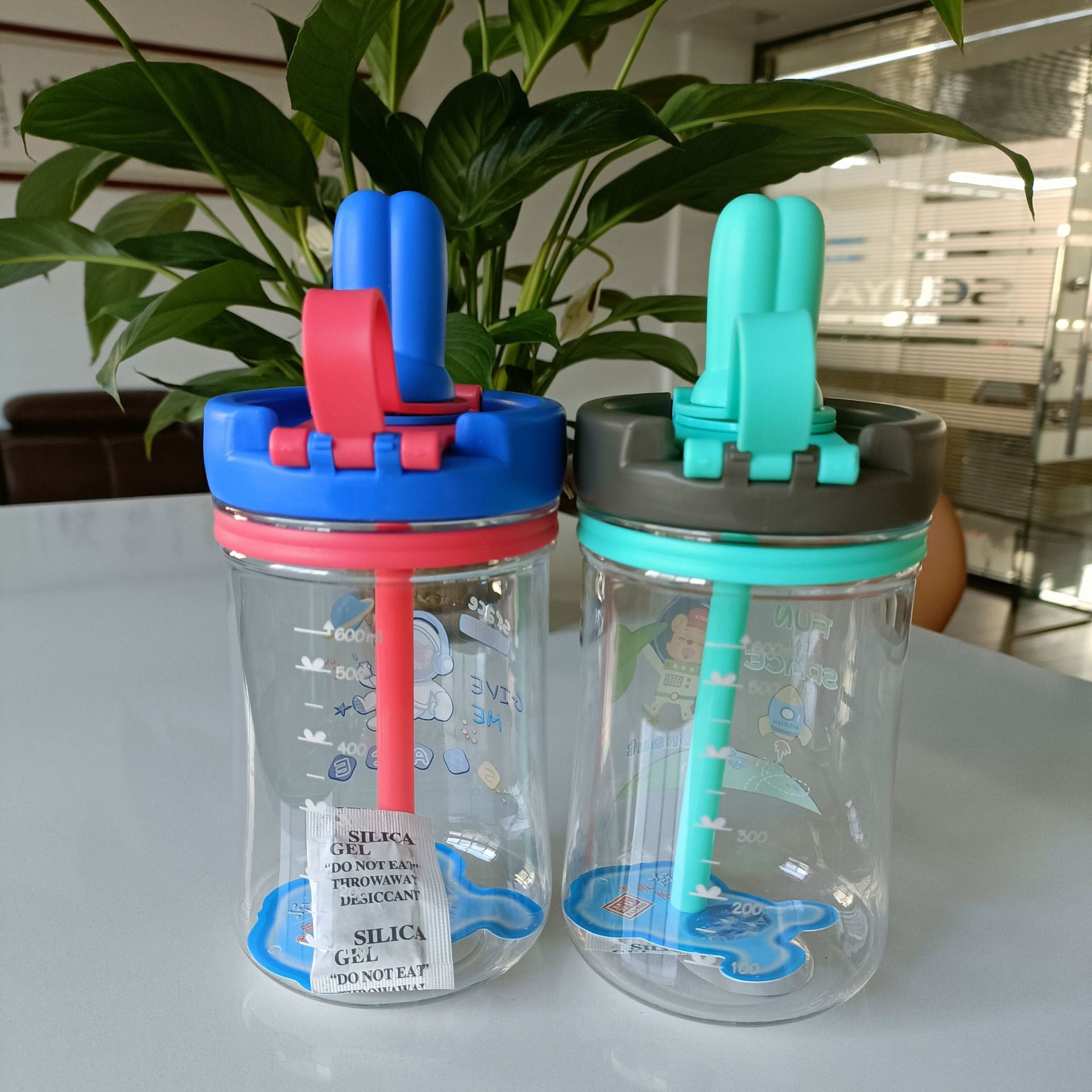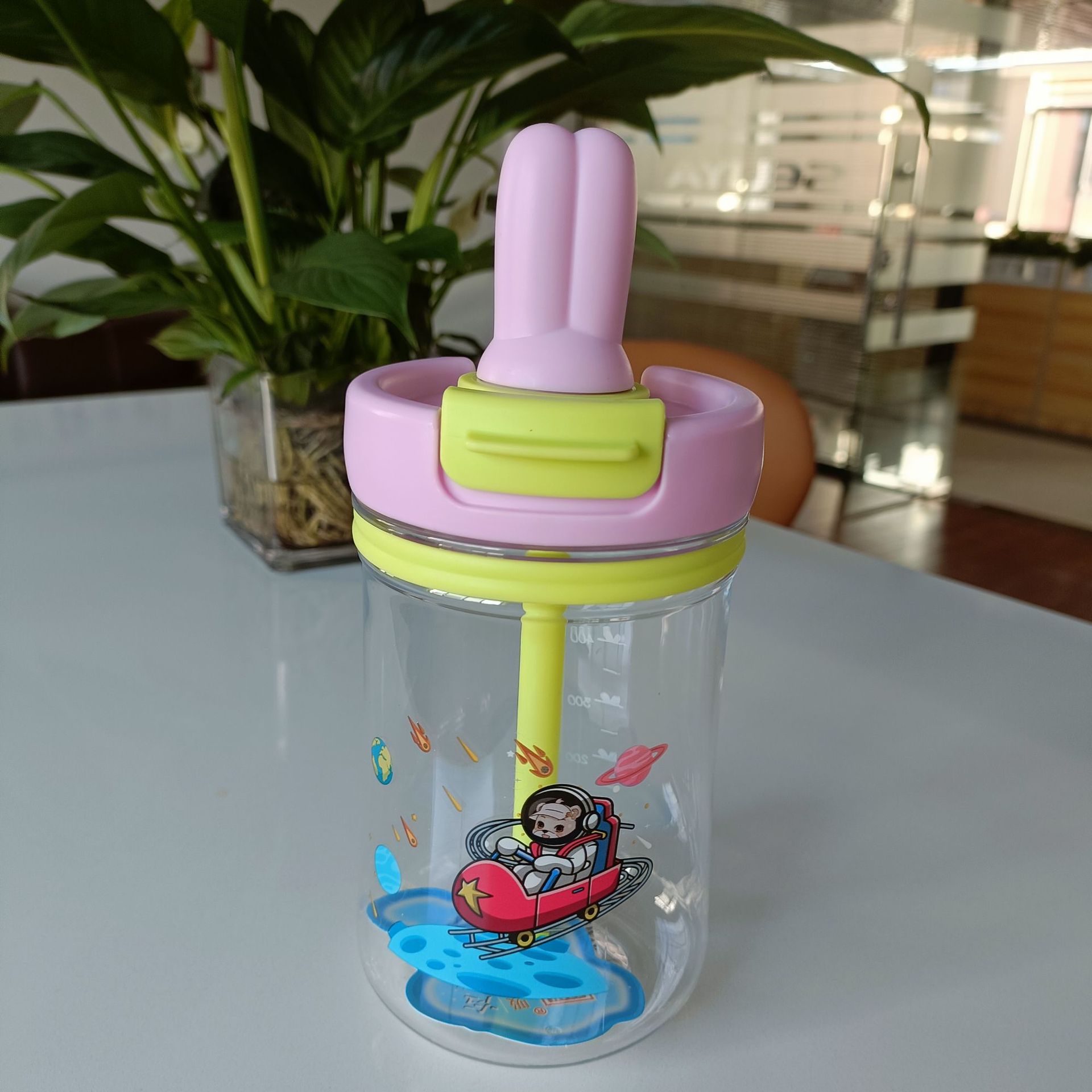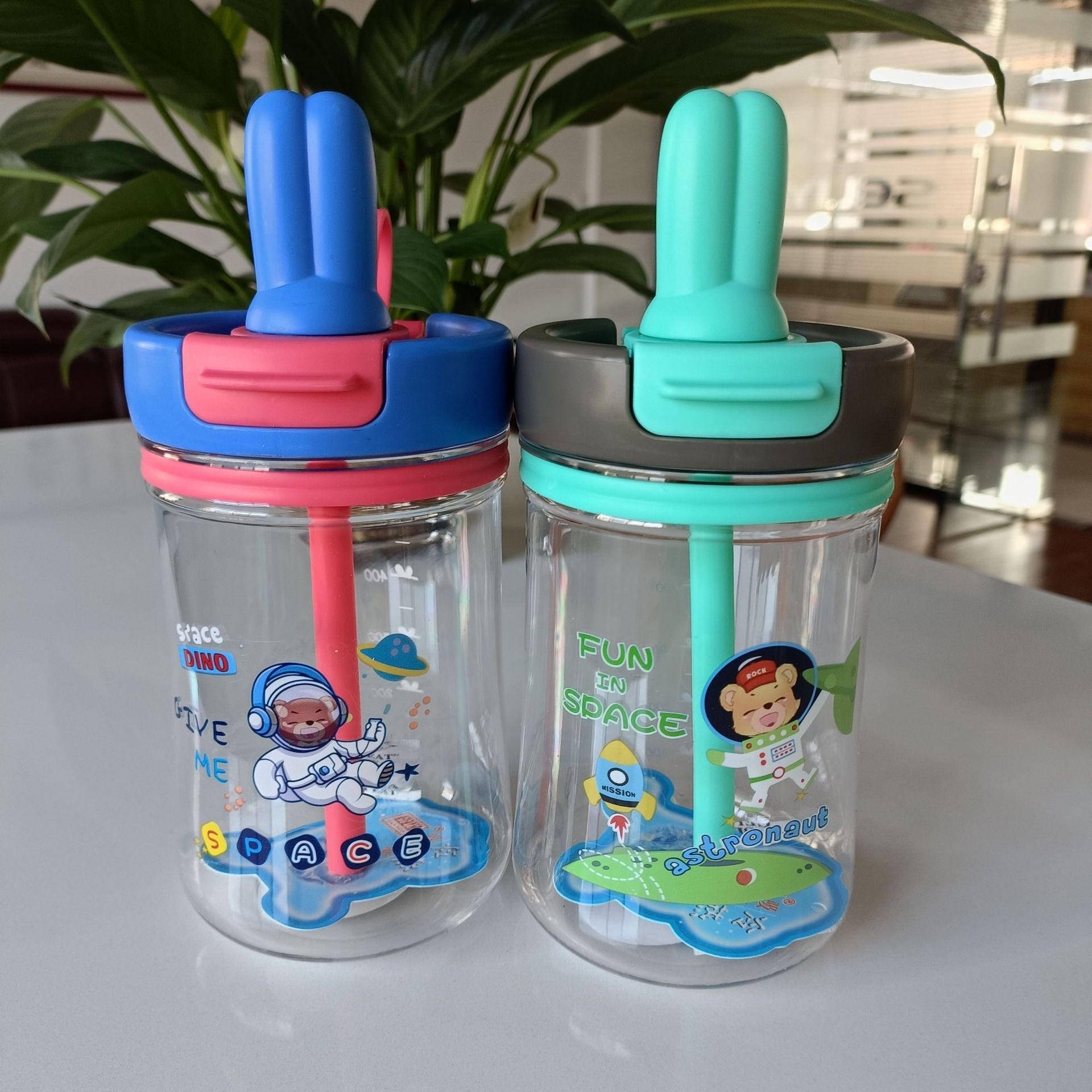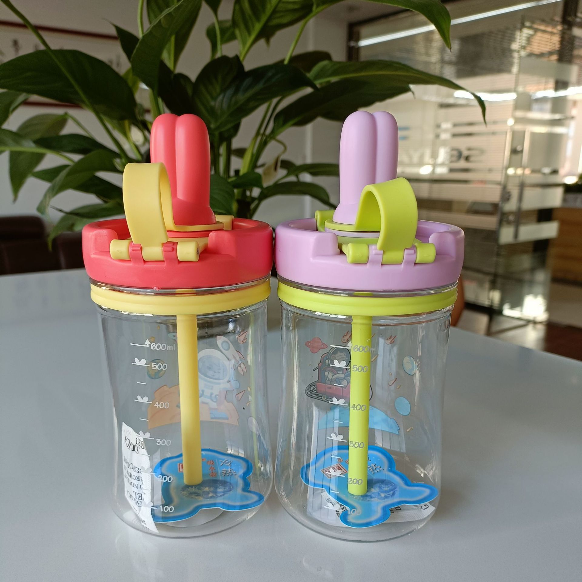 Product code: 2688 New style rabbit head children's creative straw drinking dual-use children's water cup