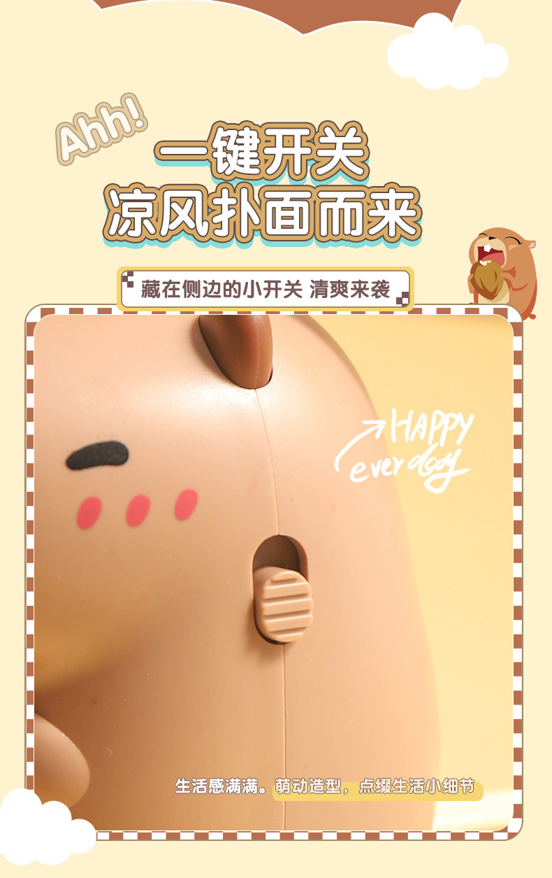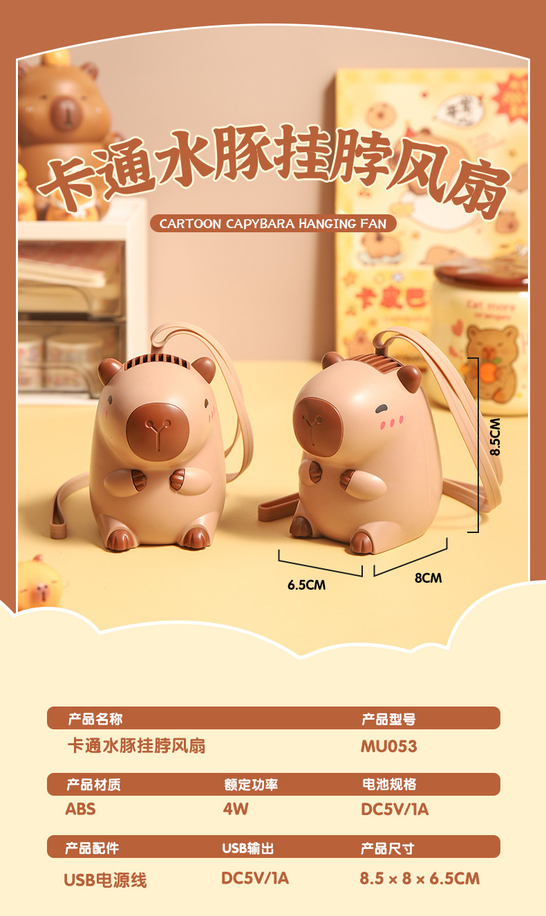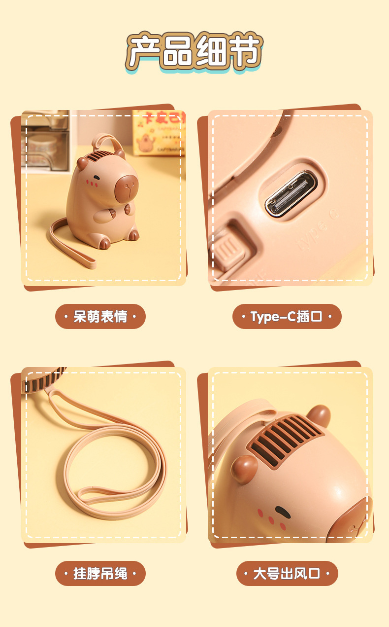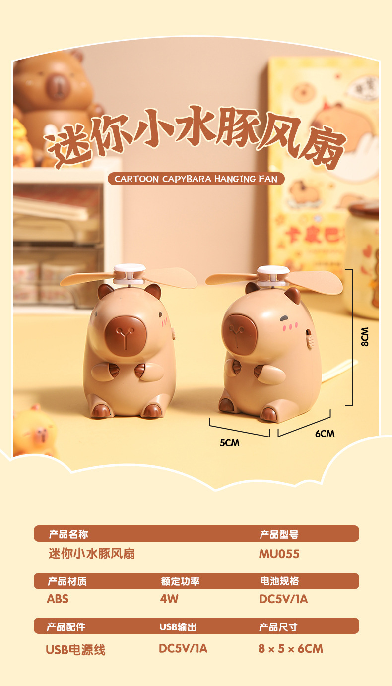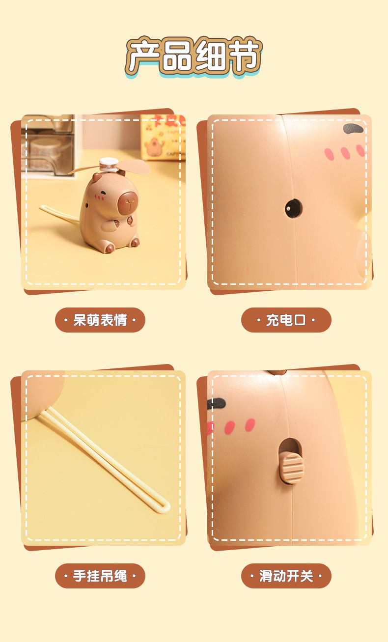 Cartoon Capybara Halter Electric Fan Cute Small Capybara Small Handheld Fan USB Rechargeable Small Electric Fan