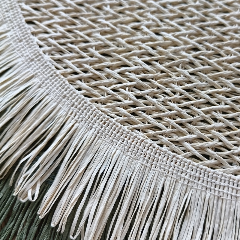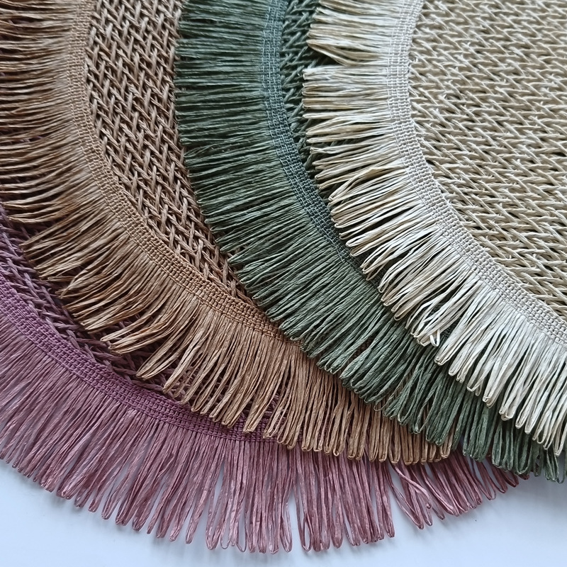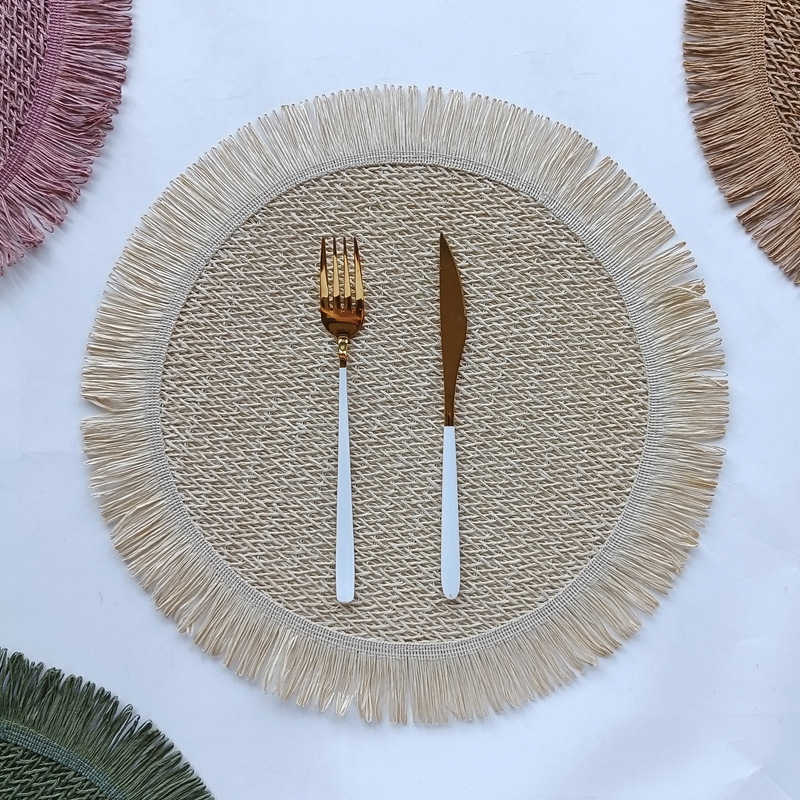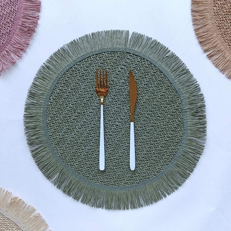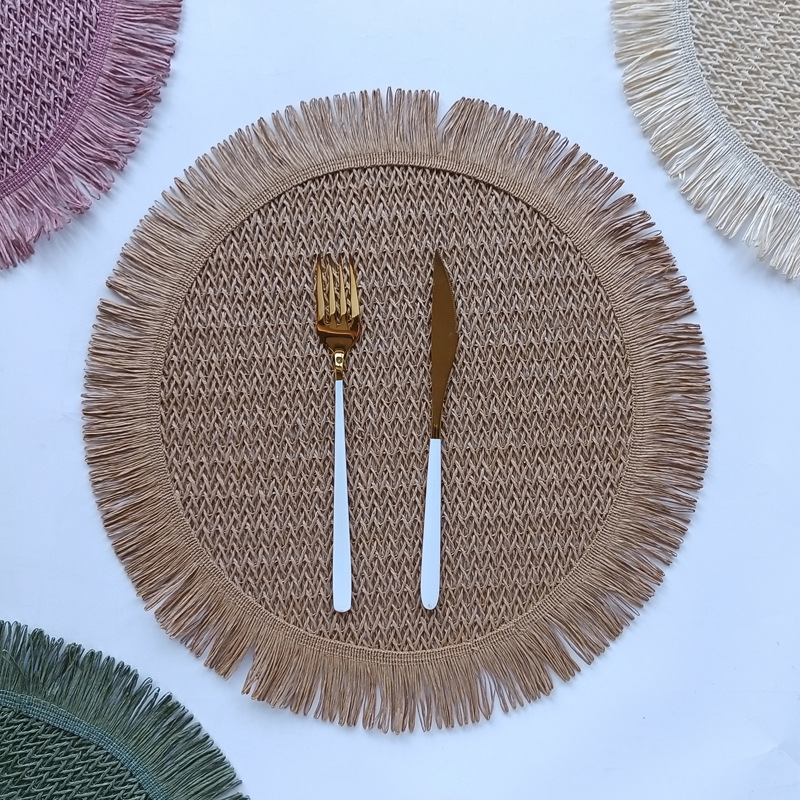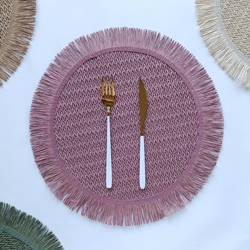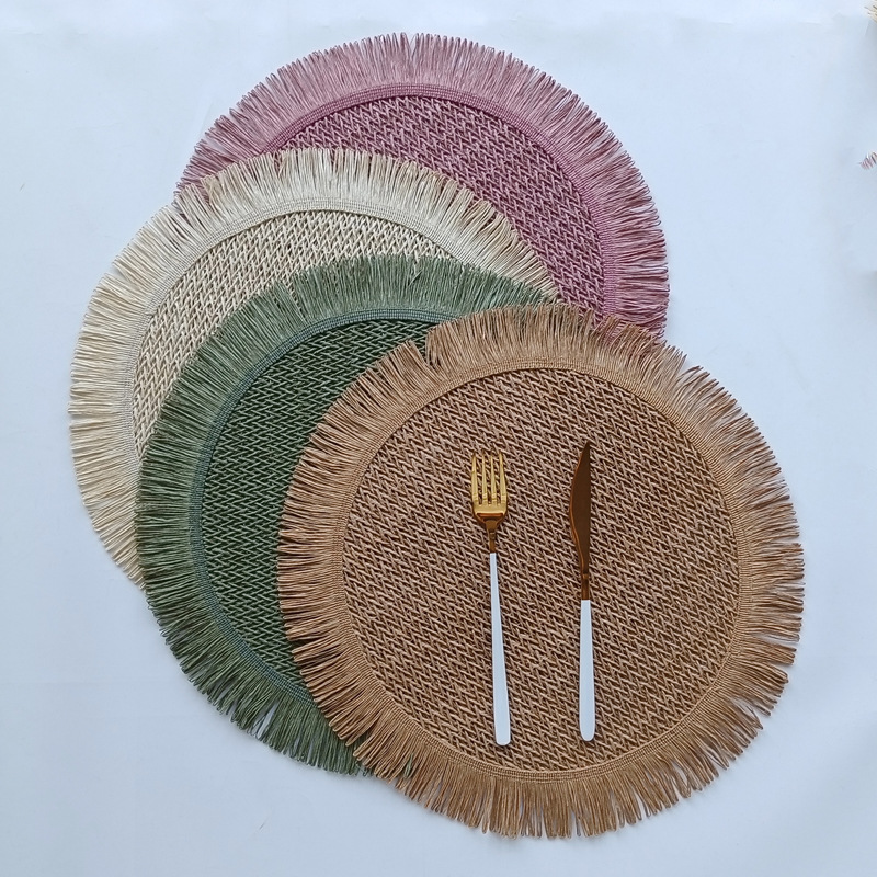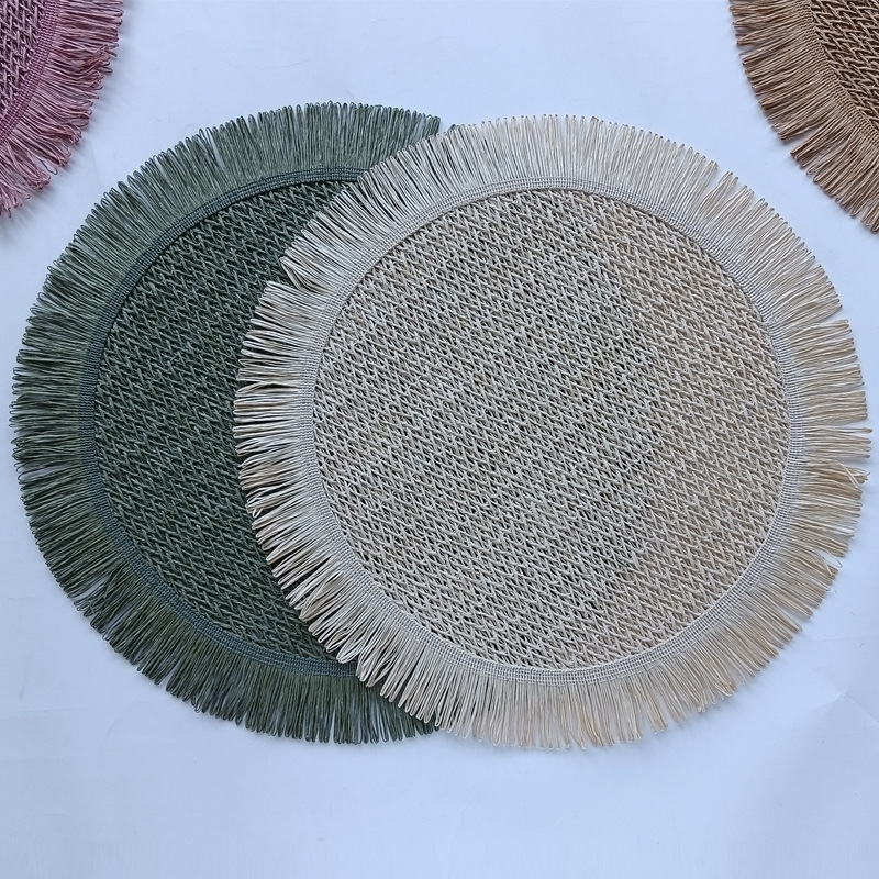 round paper string placemat tassel side weaving hollow placemat colorful dining table decorative pad kitchen home coasters placemat