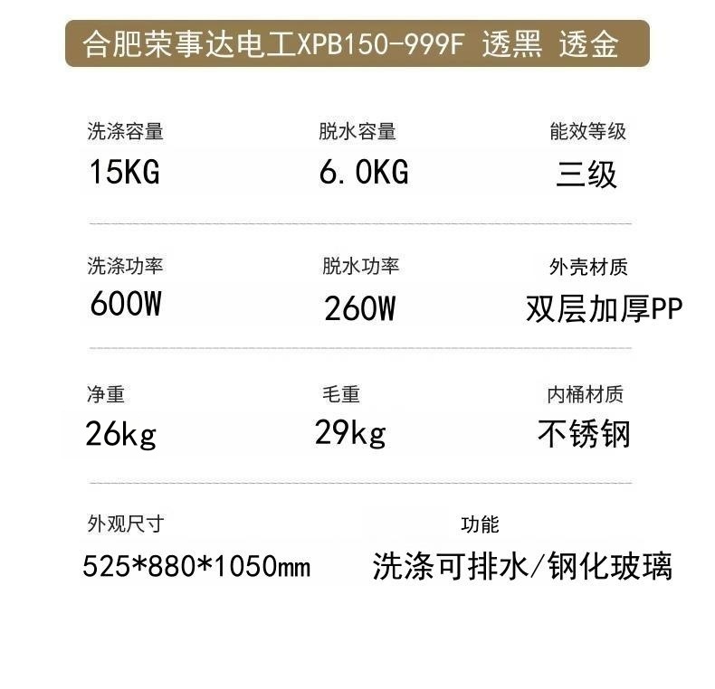 15kg transparent gold double stainless steel double-layer thickened