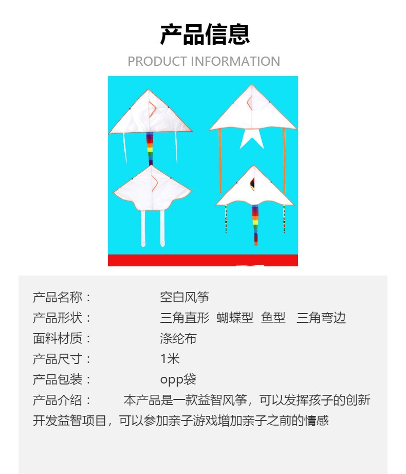 1 m blank kite four random hair (straight edge curved edge fish type butterfly type)
