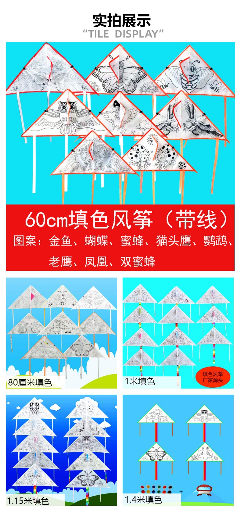 | 1.15 m color filling kite mixed hair +50 m thread + eight color paint + brush | CN¥ 4.2 | 100000 piece available |