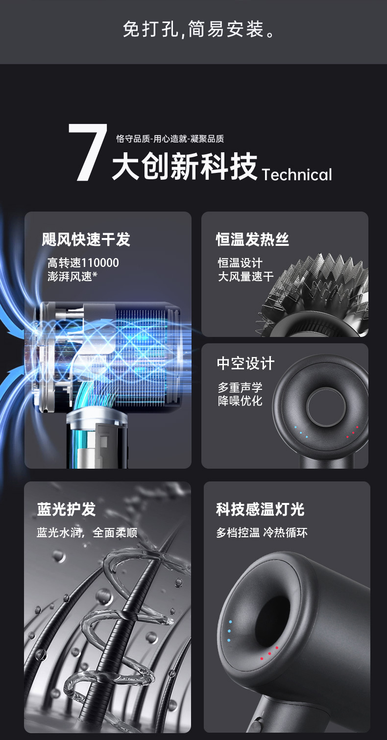 european standard (not applicable in china) high-speed bladeless [no. 86] hollow deep black