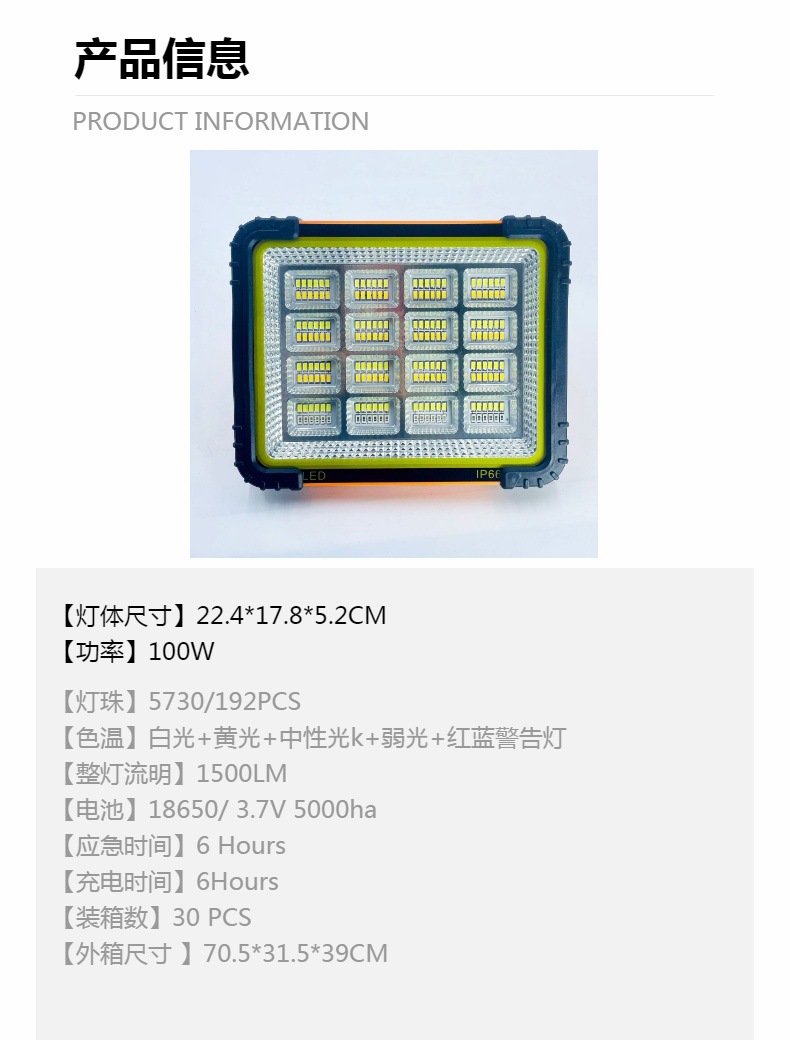 16t-100w-196 bead wide edge (5-block dimming + usb charging cable)