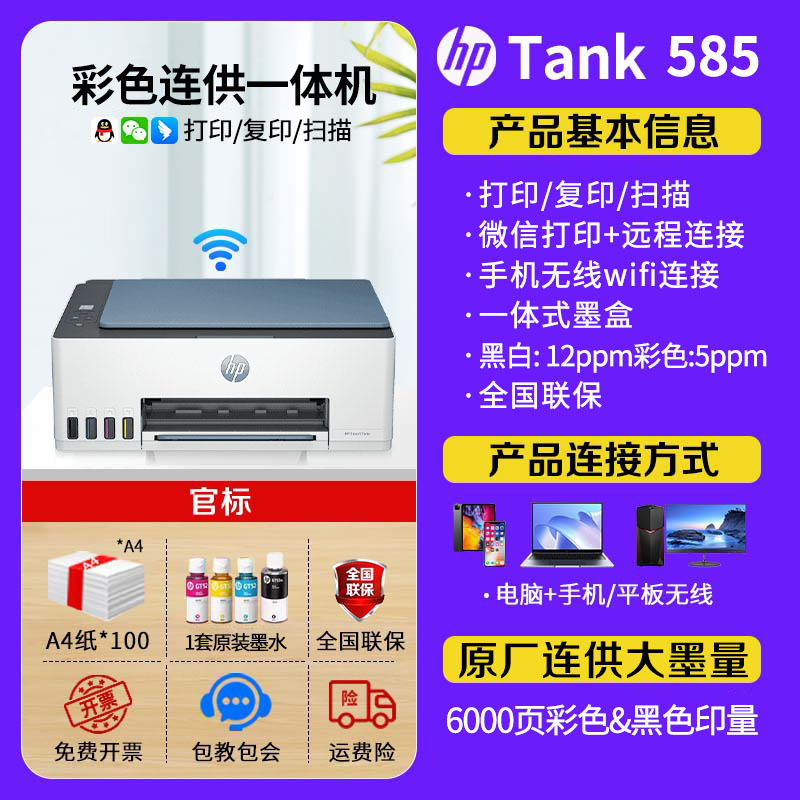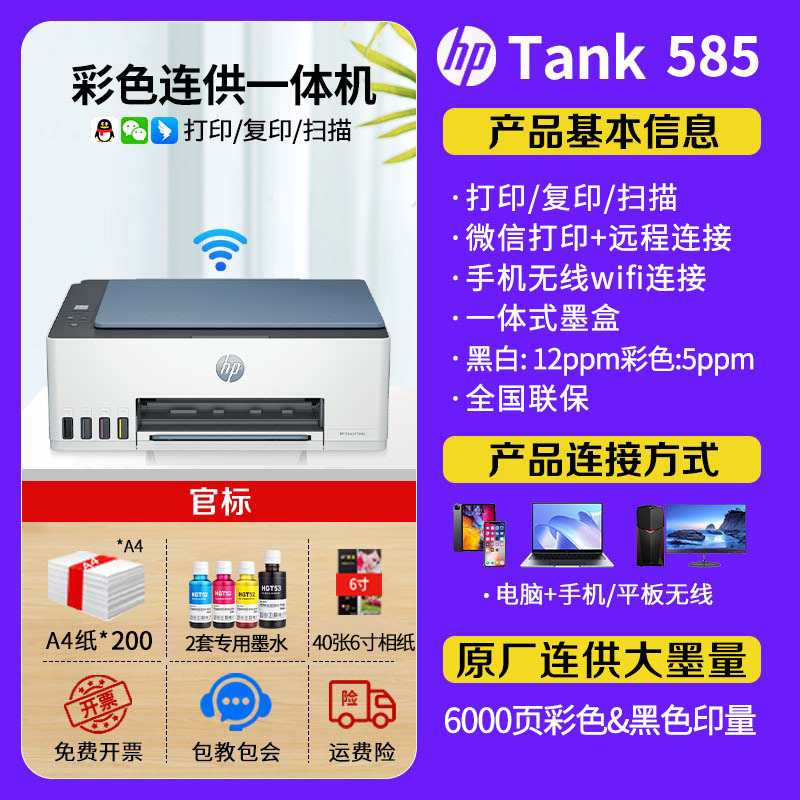 tank585 sets of 2:(2 sets of special ink +200 copy paper +40 photo paper)