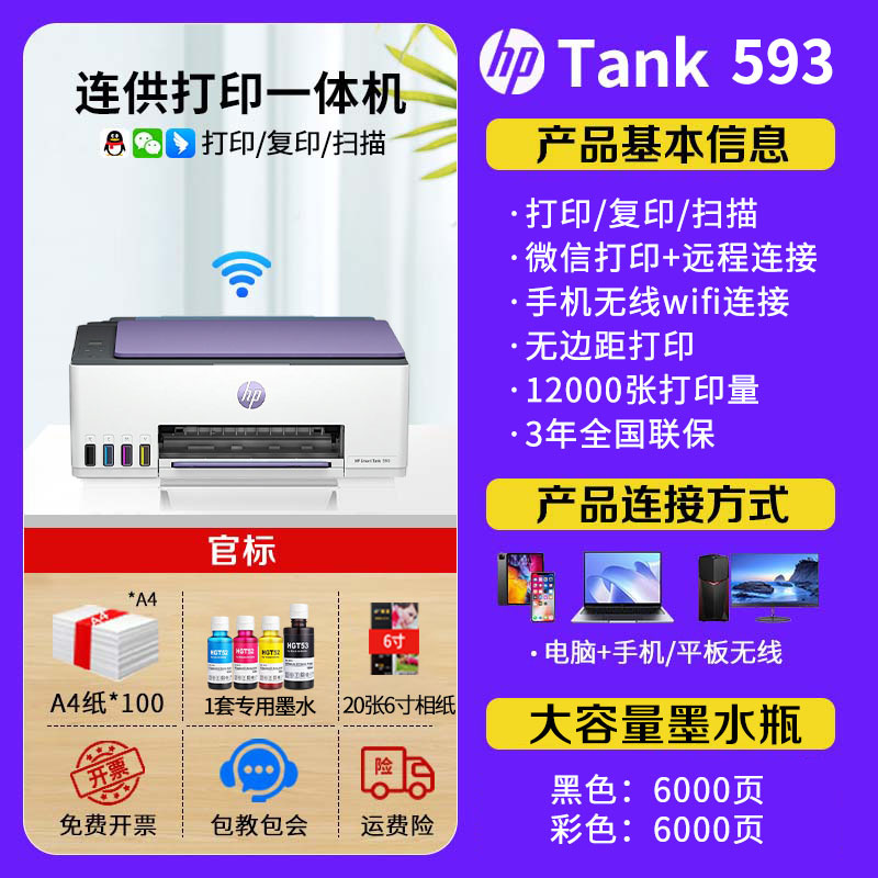 tank593 sets of 2:(2 sets of special ink +200 copy paper +40 photo paper)