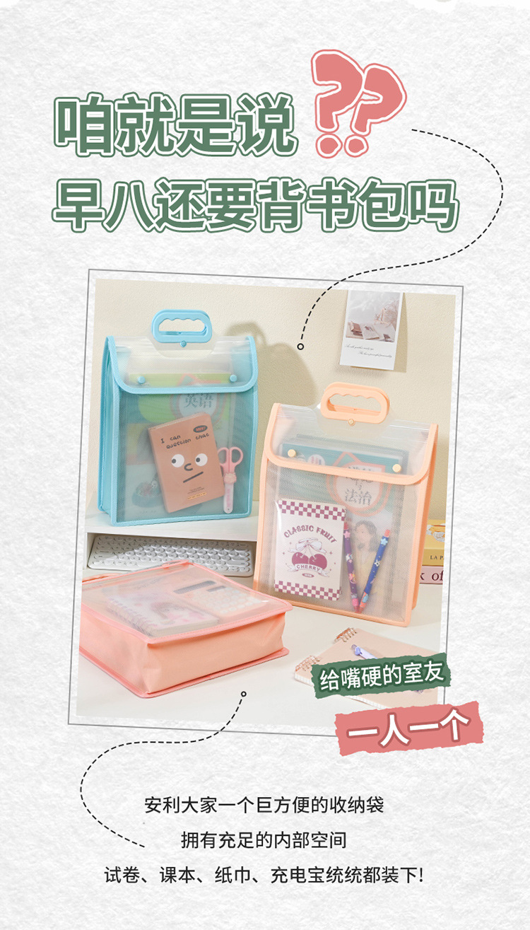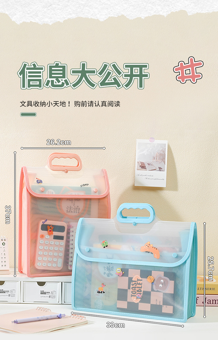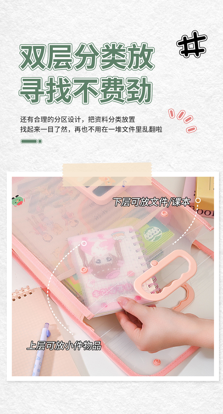 a4 double-layer portable primary school student subject sorting bag simple transparent junior high school student examination paper storage large capacity stationery bag