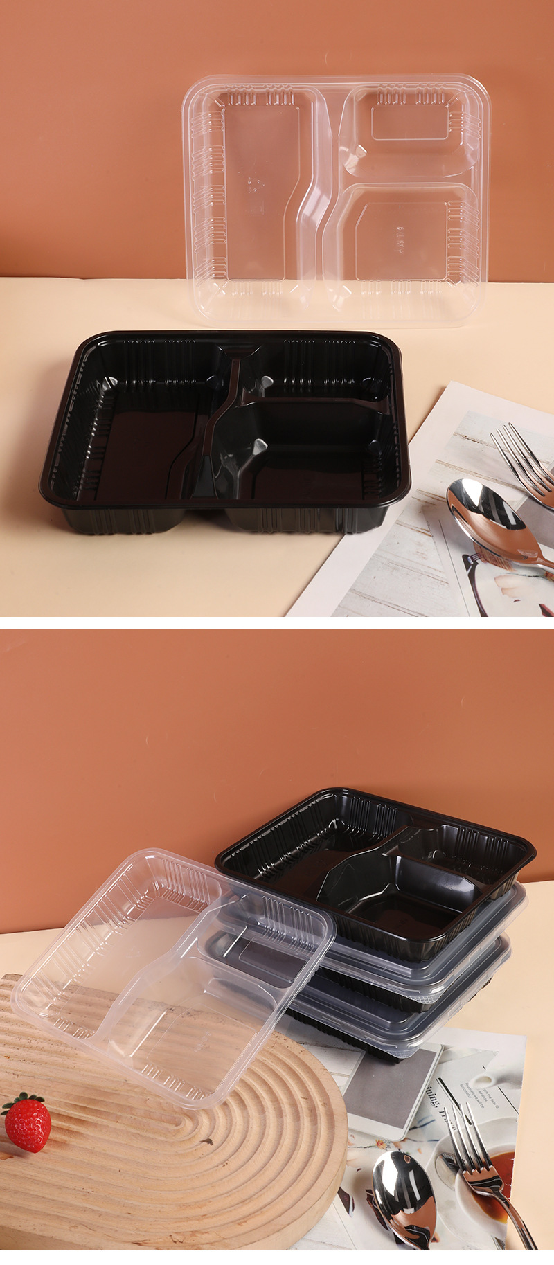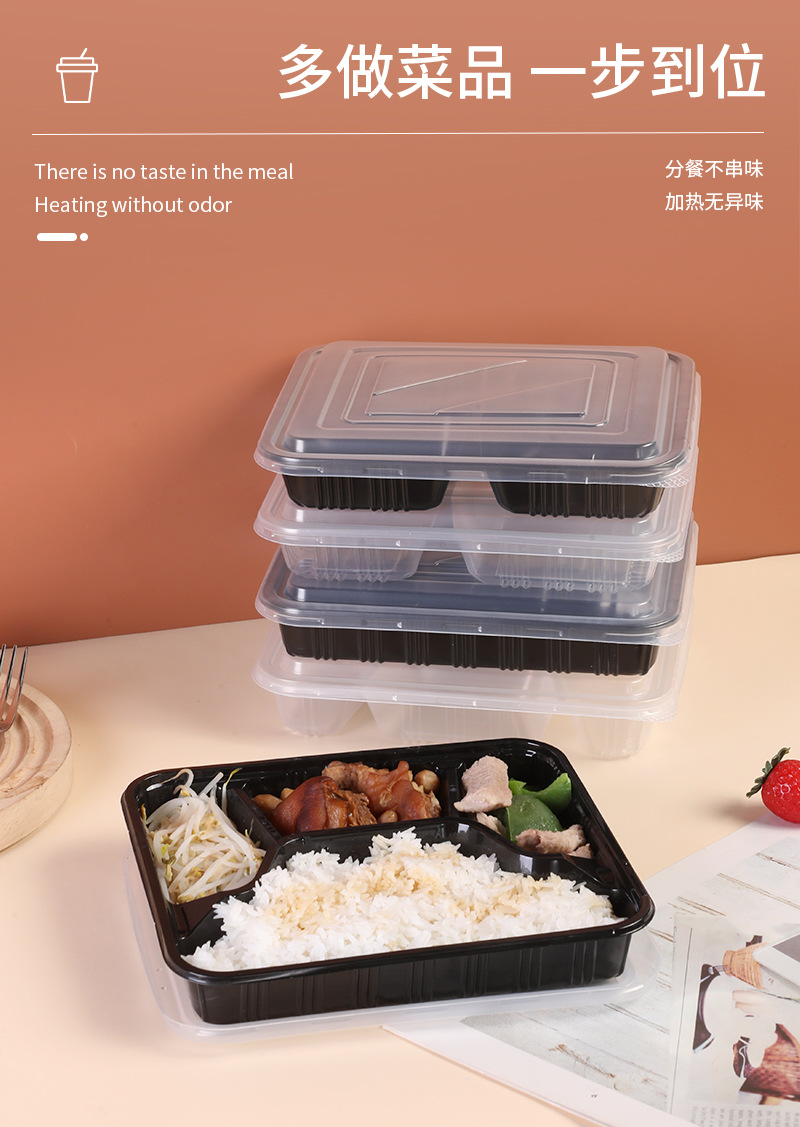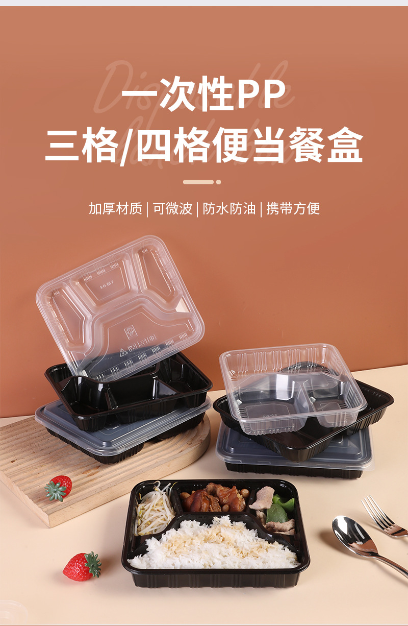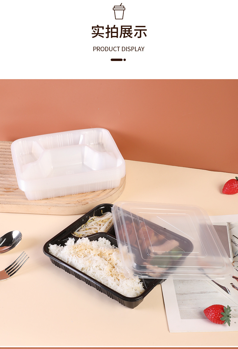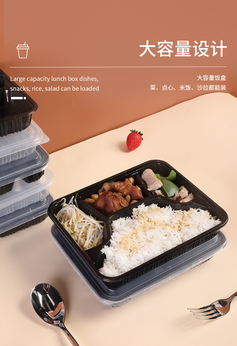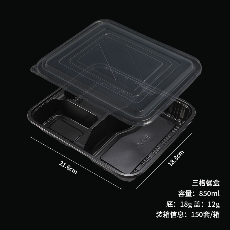 three-grid black lunch box [with transparency cover]]