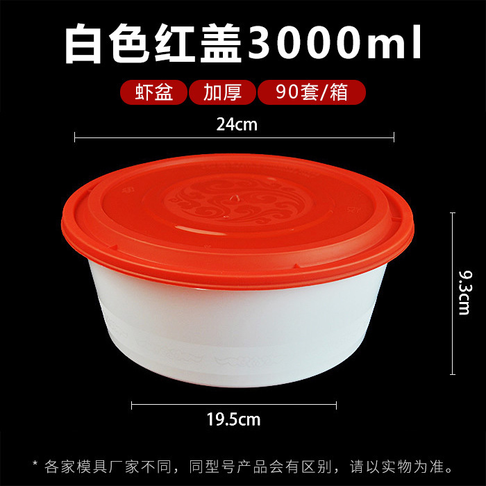 3000ml round white bowl red cover 90 sets